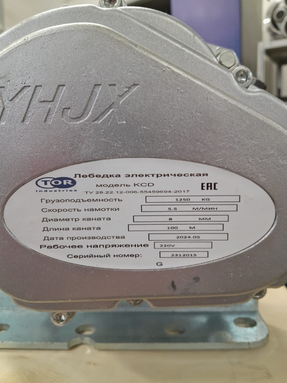 Лебедка электрическая 1250кг 100м с канатом 220В алюминиевый корпус TOR KCD(А) в Казани