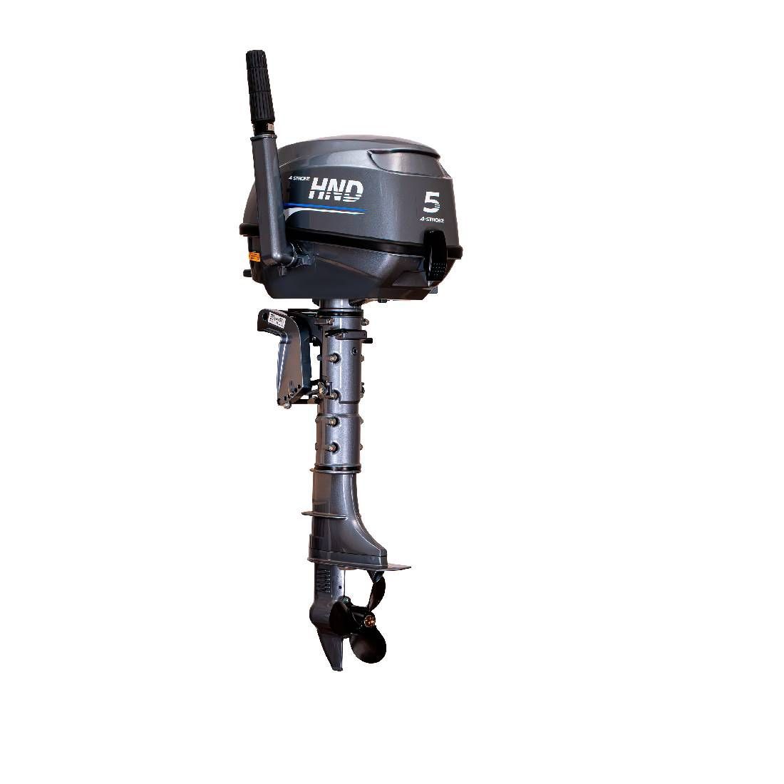 HND OB 5 FHS оснащен румпельным типом управления с ручным запуском и коротким дейдвудом. Топливным баком емкостью 1,1 литра для комфортной заправки и водяным охлаждением лодочного мотора. Вращение гребного винта стандартное.