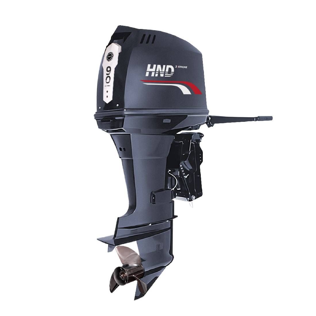 HND OB 90 ERTL оснащен длинным дейдвудом, дистанционным типом управления с электростартером и гидроподъемом. Топливным баком емкостью 24 литров для комфортной заправки и водяным охлаждением лодочного мотора. Вращение гребного винта стандартное.