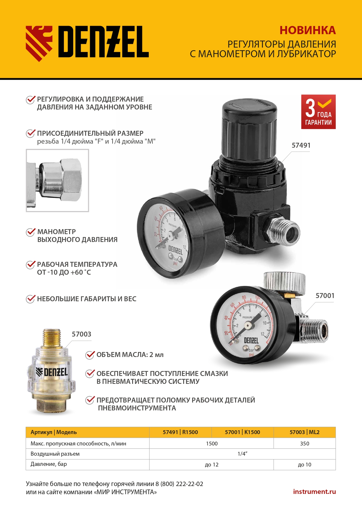 Лубрикатор ML2, 10 бар, 1/4" Denzel в Казани