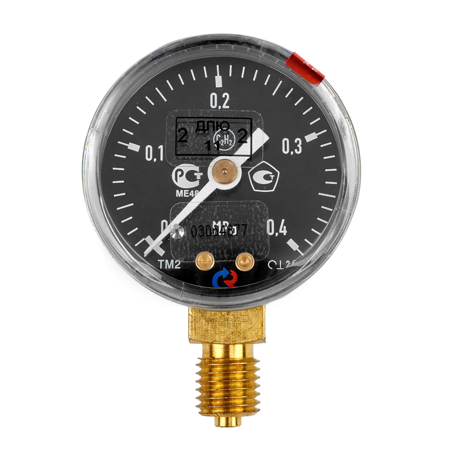 Сварочный манометр типа ТМ, серия 10. Применяется для измерения давления в жидких и газообразных, не вязких и не кристаллизирующихся измеряемых средах, с температурой до 80°C, неагрессивных к медным сплавам. Широко применяется в баллонных редукторах и регуляторах.