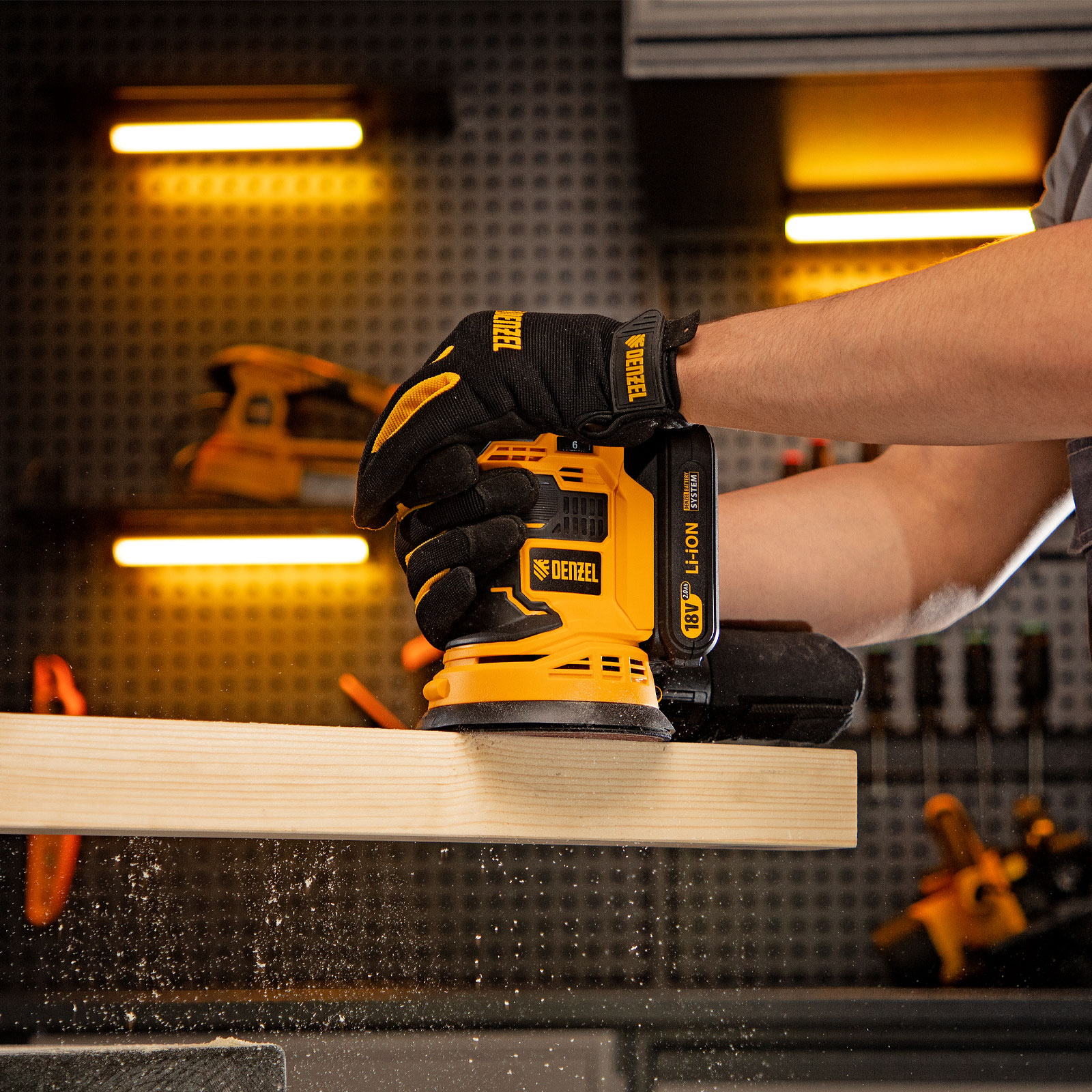 Машина шлифовальная эксцентриковая аккумуляторная COS-125-0, 18В Li-Ion Denzel
