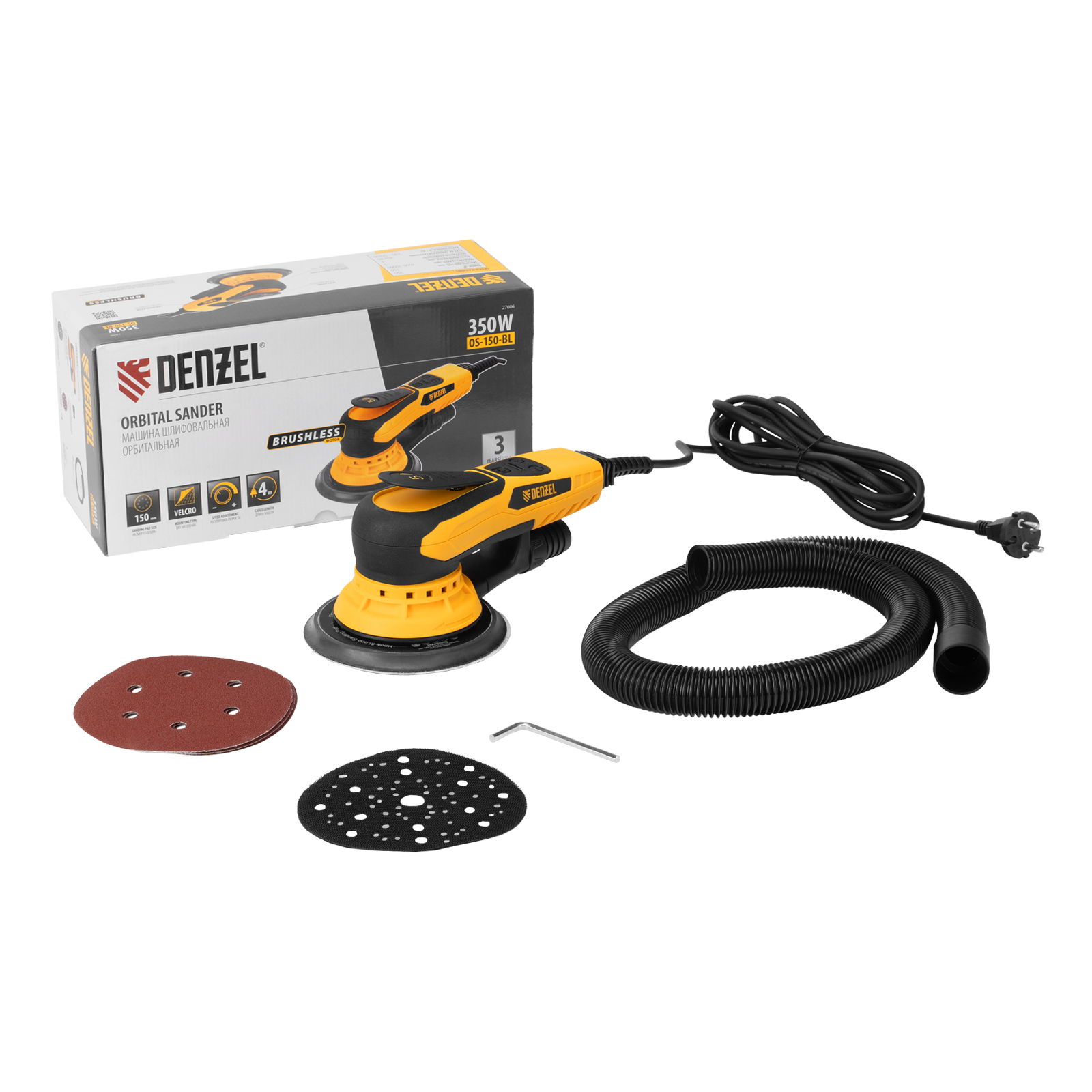 Машина шлифовальная орбитальная бесщет OS-150-BL, 350 Вт, 4000-10000 об/мин Denzel в Казани
