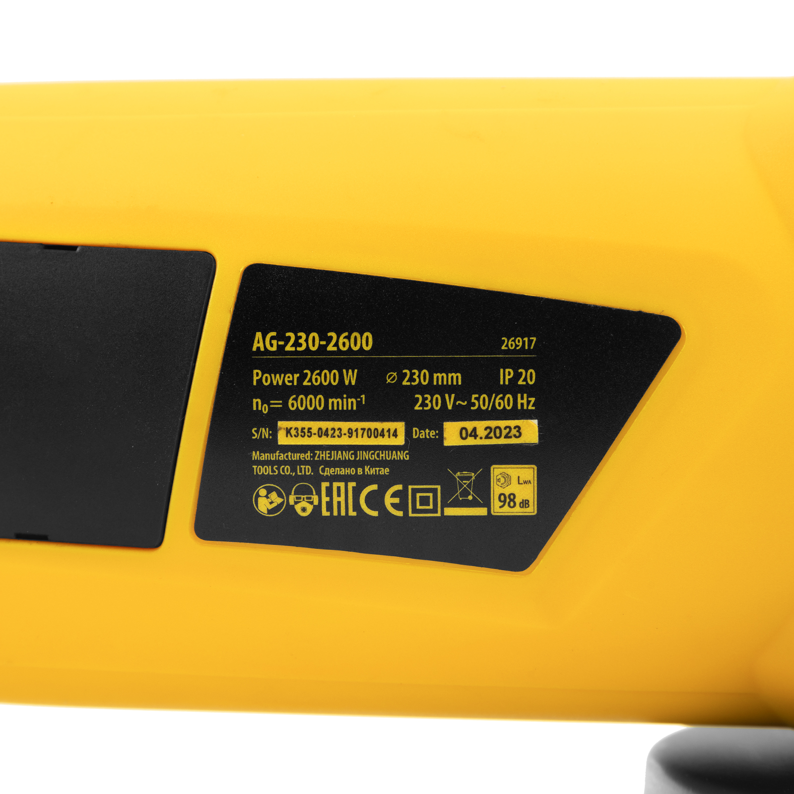 Машина шлифовальная угловая AG230-2600, 2600 Вт, 230 мм, 6000 об/мин Denzel