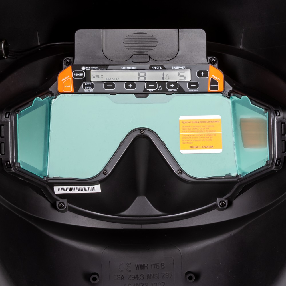 Сварочная маска FC X855 серии Ultimate предназначена для защиты глаз, лица и шеи сварщика от вредного ультрафиолетового излучения, искр и брызг расплавленного металла. Режимы и параметры настраиваются с помощью удобных кнопок на цифровой панели управления светофильтра, а вся необходимая информация отображается на LCD экране. Оптимальный размер смотровой области обеспечивает панорамный обзор на 180 градусов и позволяет видеть окружающее пространство. С внешней стороны на корпусе расположена кнопка переключения режима шлифовки (GRIND).АВТОМАТИЧЕСКАЯ НАСТРОЙКА ЗАТЕМНЕНИЯ: Сварочная маска оборудована синергетическим подбором параметров затемнения. В режиме синергетики система автоматически устанавливает нужные параметры затемнения в зависимости от условий рабочего процесса.7 ОПТИЧЕСКИХ ДАТЧИКОВ: Независимые фотодатчики мгновенно срабатывают при появлении сварочной дуги и поддерживают закрытое состояние светофильтра даже тогда, когда один из датчиков перекрыт каким-либо препятствием. Повышенная чувствительность сенсоров даёт исключительную стабильность обнаружения дуги. Маска оснащена семью независимыми датчиками, что гарантирует срабатывание даже в том случае, если 6 датчиков будут закрыты.ПАНОРАМНЫЙ ОБЗОР: Оптимальный размер смотровой области маски обеспечивает панорамный обзор на 180 градусов, максимальный комфорт, безопасность при работе и позволяет хорошо видеть как область сварки, так и окружающее пространство.УНИКАЛЬНЫЙ МЕХАНИЗМ ДВИЖЕНИЯ: Механизм движения, установленный на оголовье маски, позволяет перемещать щиток в нескольких плоскостях. Это уникальная конструкция механизма движения, которая снижает нагрузку на голову и шею сварщика, а также облегчает работу в ограниченном пространстве.ИНФОРМАТИВНАЯ ПАНЕЛЬ УПРАВЛЕНИЯ: Маска оборудована цифровой панелью управления для удобной настройки светофильтра. На панели расположены органы управления светофильтра и LCD дисплей с индикацией настроек и параметров.ПРЕИМУЩЕСТВА:Цифровая панель управления с LCD дисплеемВнешняя кнопка включения режима GRIND (шлифовка)Чувствительность светофильтра в TIG-сварке меньше 2 амперЛёгкий и прочный материал маски, негорючий и стойкий к излучению сварочной дугиОптимальный размер смотрового окна2 диапазона затемнения7 независимых фотодатчиков4 вида регулировки оголовьяИндикатор заряда батареиТехнология FULL COLORМаксимальная постоянная защита от невидимого УФ/ИК излучения дугиКомбинированное питаниеСоответствие современным стандартам качества DIN, ISO, EN379ФУНКЦИОНАЛЬНЫЕ ОСОБЕННОСТИ:РЕЖИМ GRIND: Режим шлифовки (Grind) даёт возможность блокировать затемнение светофильтра для использования маски в качестве защитного щитка при работе с УШМ («болгаркой») или шлифовальным инструментом. Кнопка включения/выключения режима удобно расположена с внешней стороны корпуса маски.ВЫСШИЙ ОПТИЧЕСКИЙ КЛАСС: Максимальный оптический класс 1/1/1/1 по параметрам оптический класс светофильтра, степень рассеивания света, однородность затемнения, угловая зависимость позволяет использовать маску при любых режимах сварки, в том числе при профессиональной TIG-сварке.2 ДИАПАЗОНА ЗАТЕМНЕНИЯ: Эта модель маски имеет 2 диапазона степени затемнения: 4 – 8 DIN и 8 - 13 DIN. Первый диапазон больше подходит для плазменной резки, лазерной сварки, ручной, полуавтоматической и 