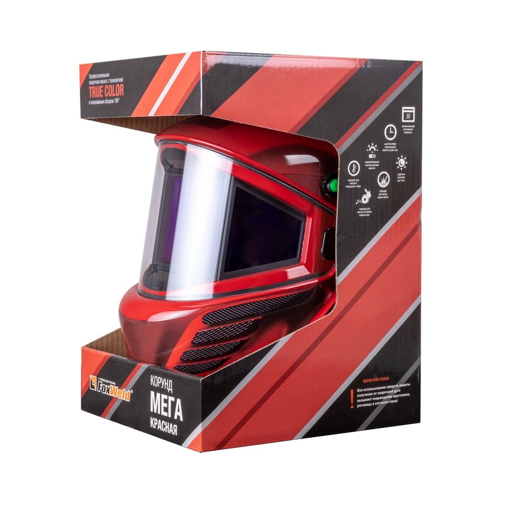 Маска сварщика КОРУНД МЕГА "красная" (ф-р MEGA LED) в коробке