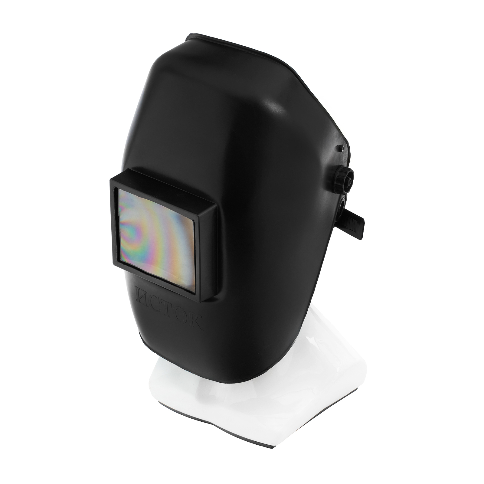 - Комфортная работа — экран обеспечивает хороший обзор во время сварки, а поролоновая накладка минимизирует трение и давление ободка на лоб.