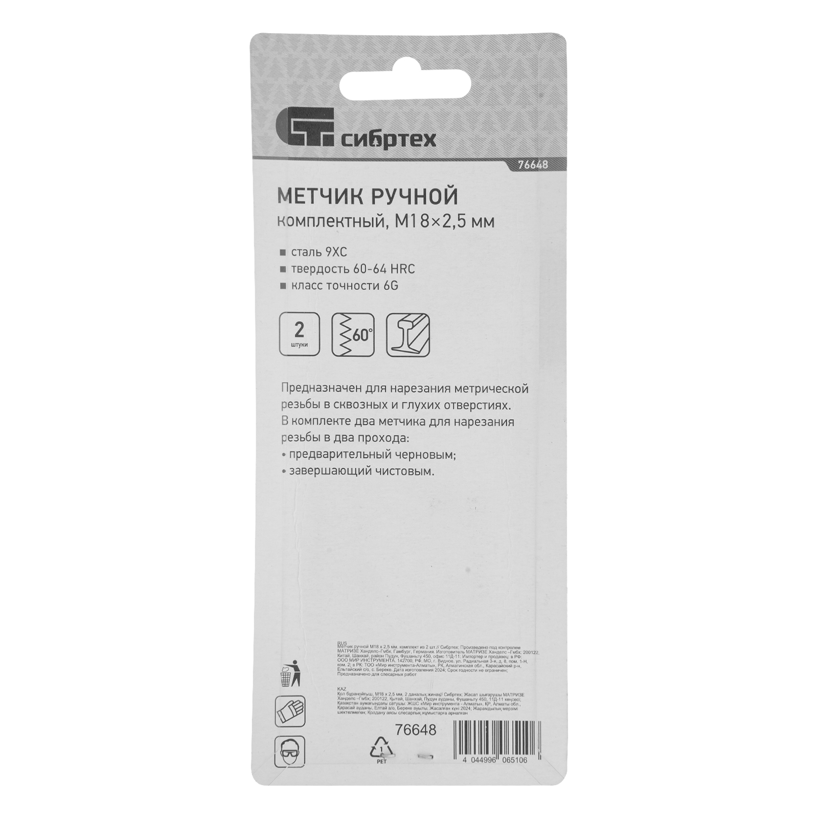 - Высокая точность резьбы — в наборе 2 метчика: черновой для первого прохода и чистовой для финишной доводки.
