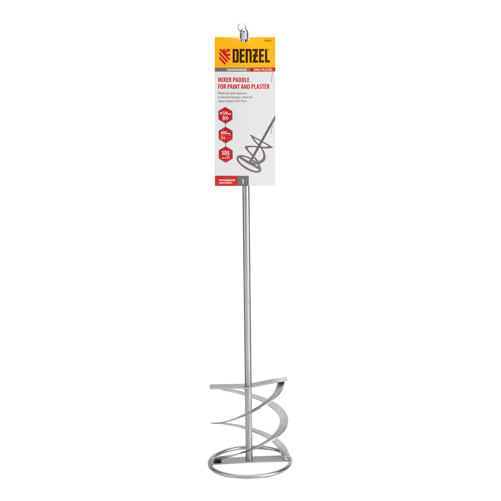 Оцинкованный миксер для красок и штукатурных смесей Denzel 848847 размером 120 х 600 мм, с хвостовиком SDS Plus, используется для замешивания строительных растворов. Спиралевидная рабочая часть перемешивает состав снизу вверх, поэтому все компоненты распределяются в нем равномерно. Защитное кольцо предотвращает повреждение емкости для размешивания состава. Штукатурный миксер устанавливается в патрон перфоратора SDS Plus и применяется во время проведения строительных и отделочных работ.