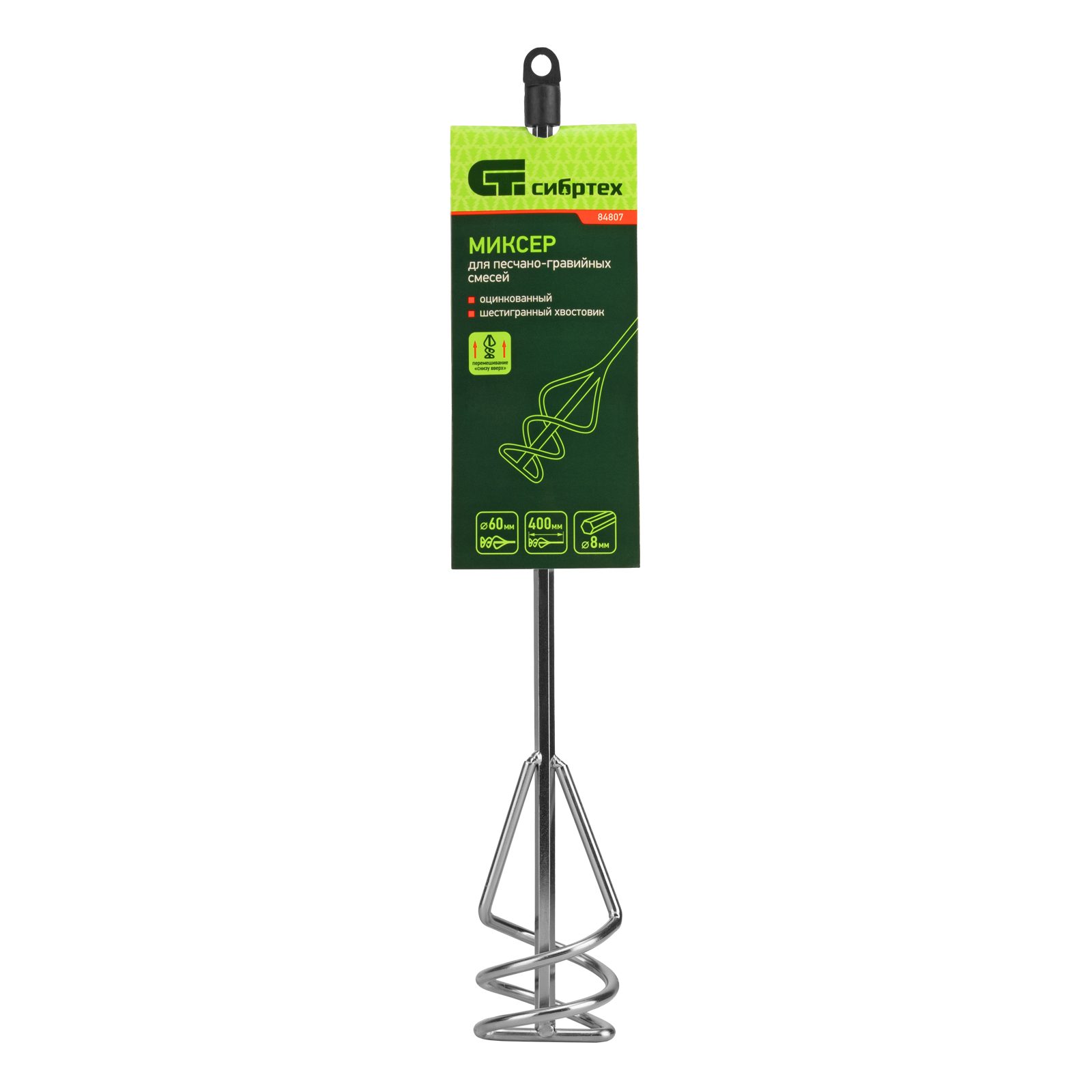 Миксер из оцинкованной стали, D 60 мм, L 400 мм, для песчано-гравийных смесей Сибртех