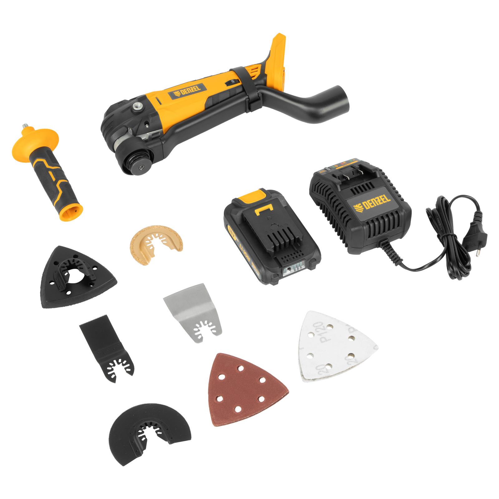 Инструмент многофункциональный аккумуляторный - 1 штбатарея аккумуляторная - 1 штустройство зарядное - 1 шттрубка пылеотводная - 1 штрукоятка боковая - 1 штнабор оснастки - 1 штинструкция по эксплуатации - 1 штгарантийный талон - 1 шт |