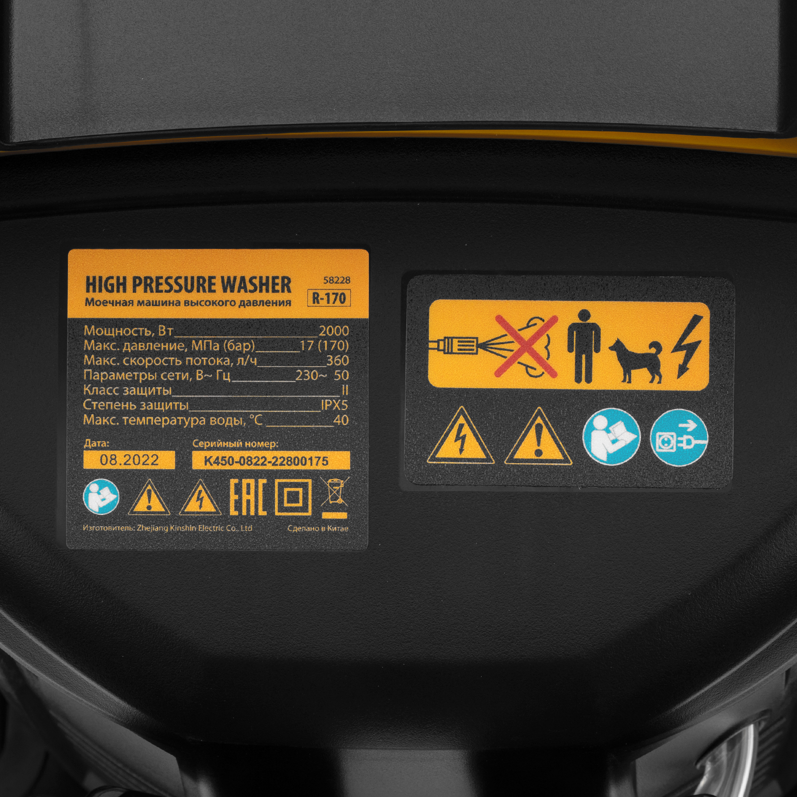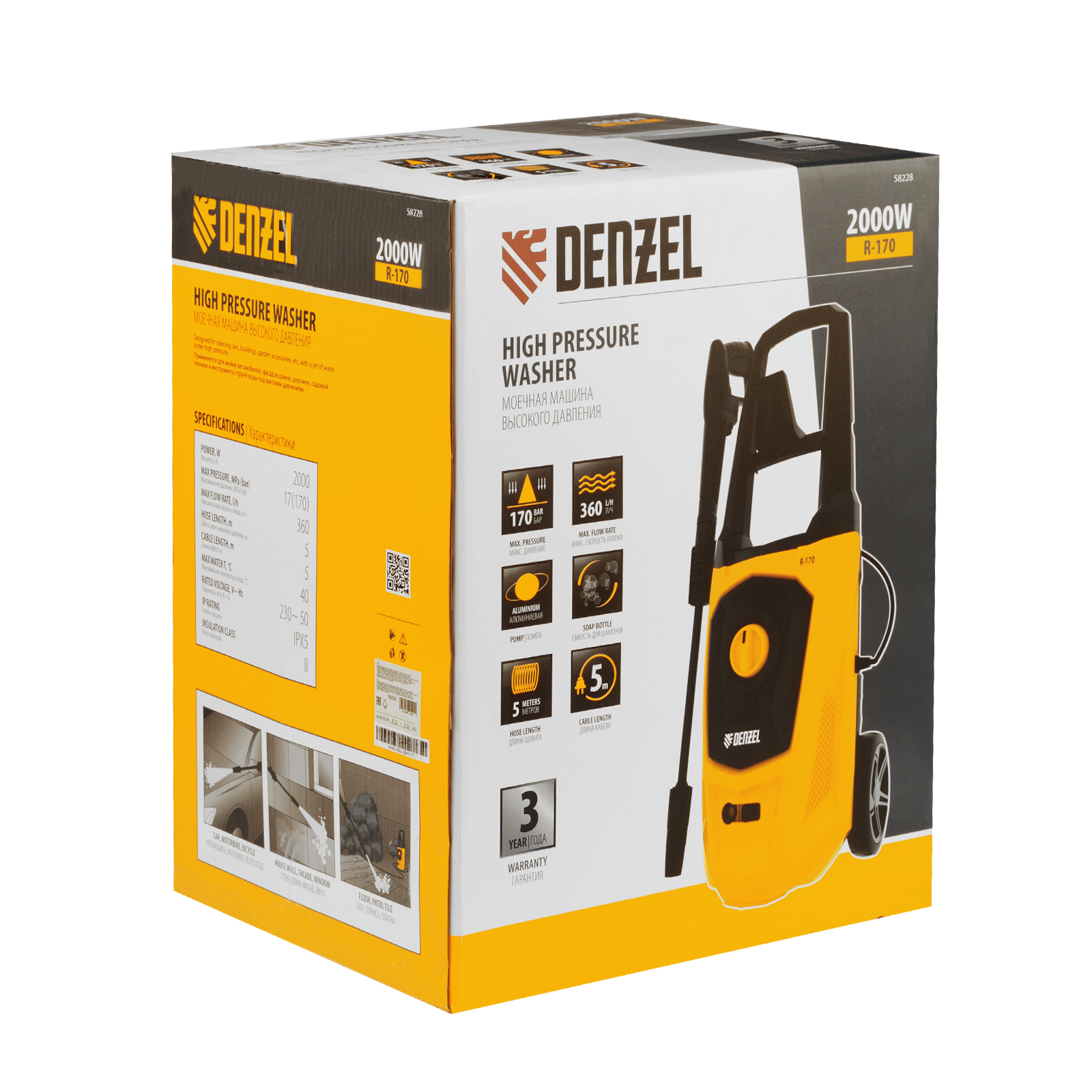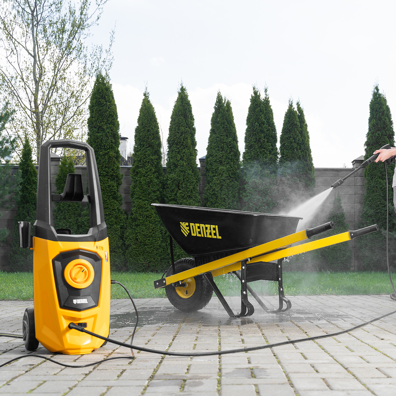Моечная машина высокого давления R-170, 2000 Вт, 170 бар, 360 л/ч, колесная Denzel