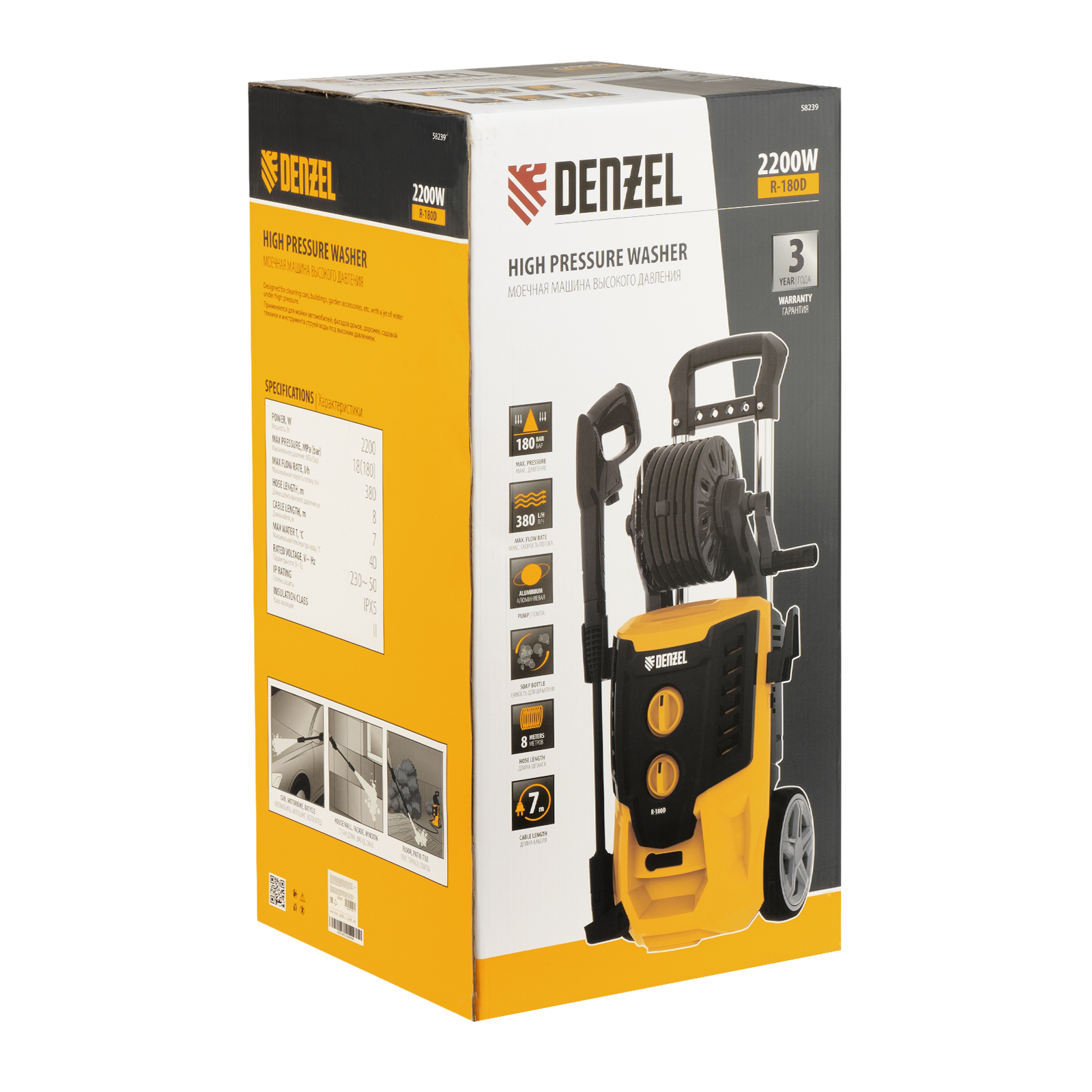 Моечная машина высокого давления R-180i, 2400 Вт, 180 бар, 7.5 л/мин, асинхронный двигатель Denzel