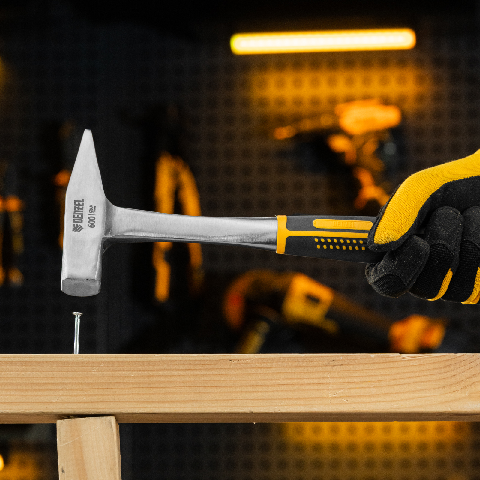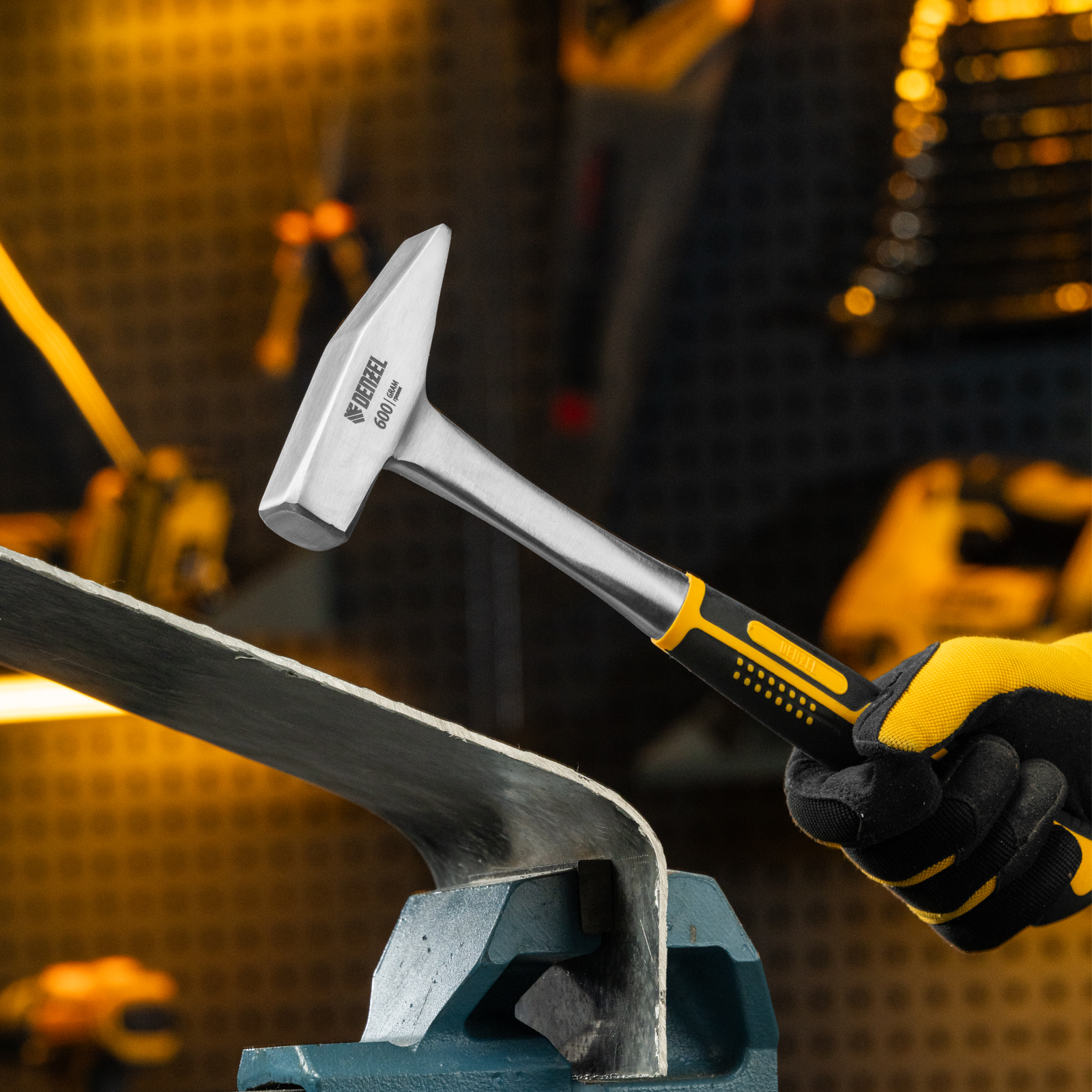 Молоток слесарный 600 г, цельнометаллический, двухкомпонентная рукоятка Denzel