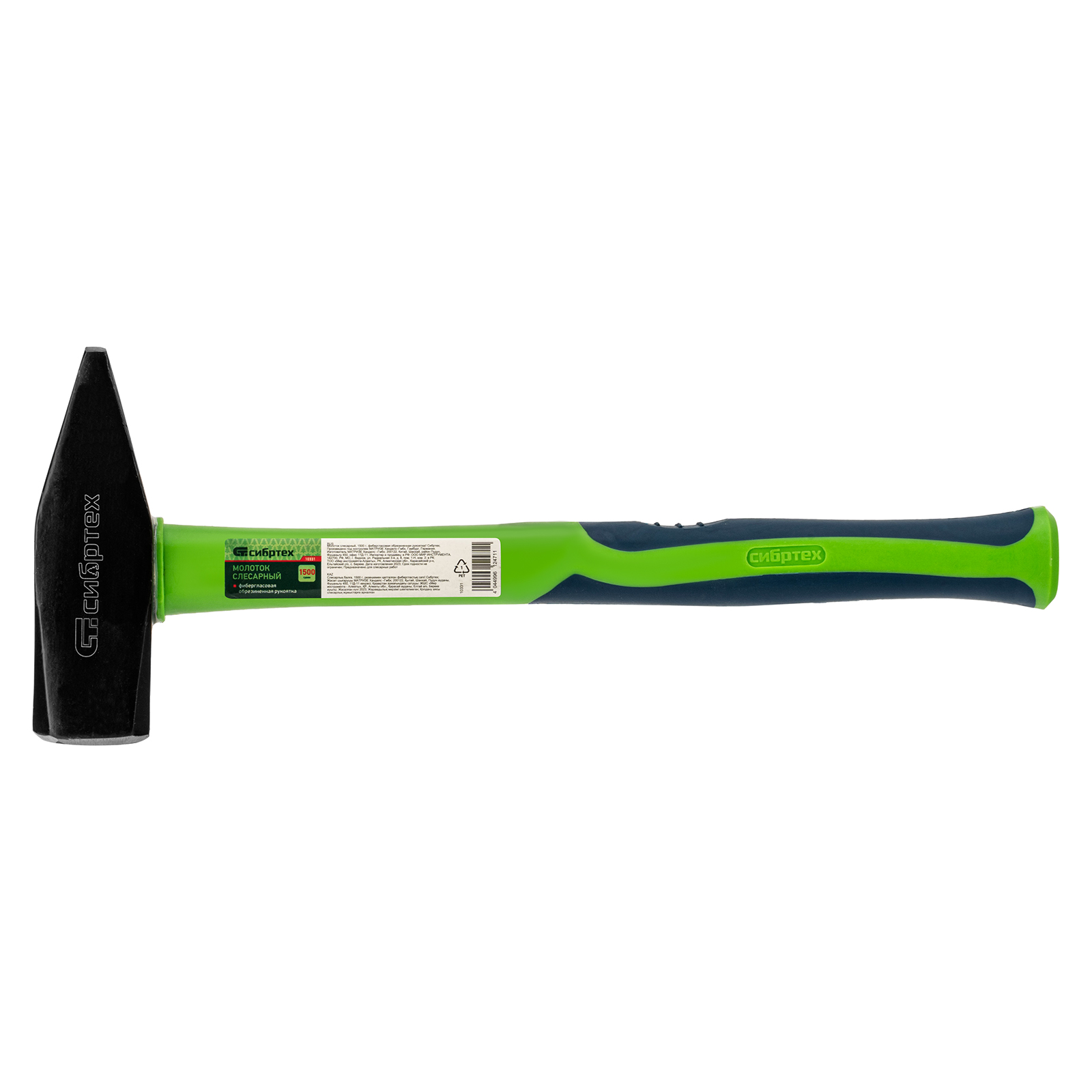 Молоток слесарный, 1500 г, фибергласовая обрезиненная рукоятка Сибртех