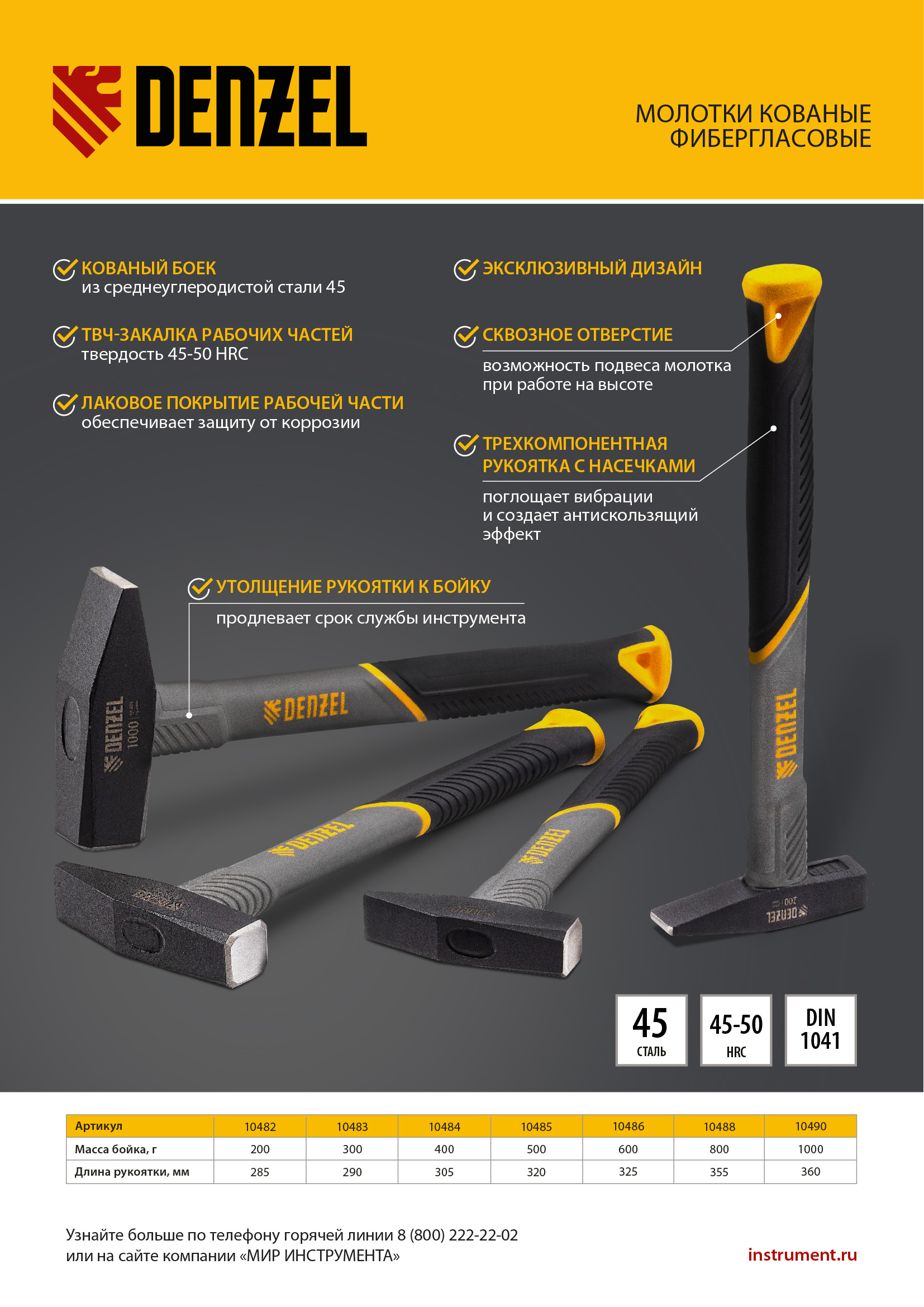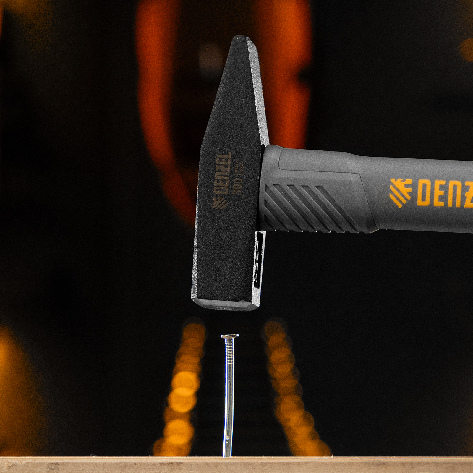 Молоток слесарный, 300 г, кованый, фибергласовая рукоятка c TPR покрытием Denzel