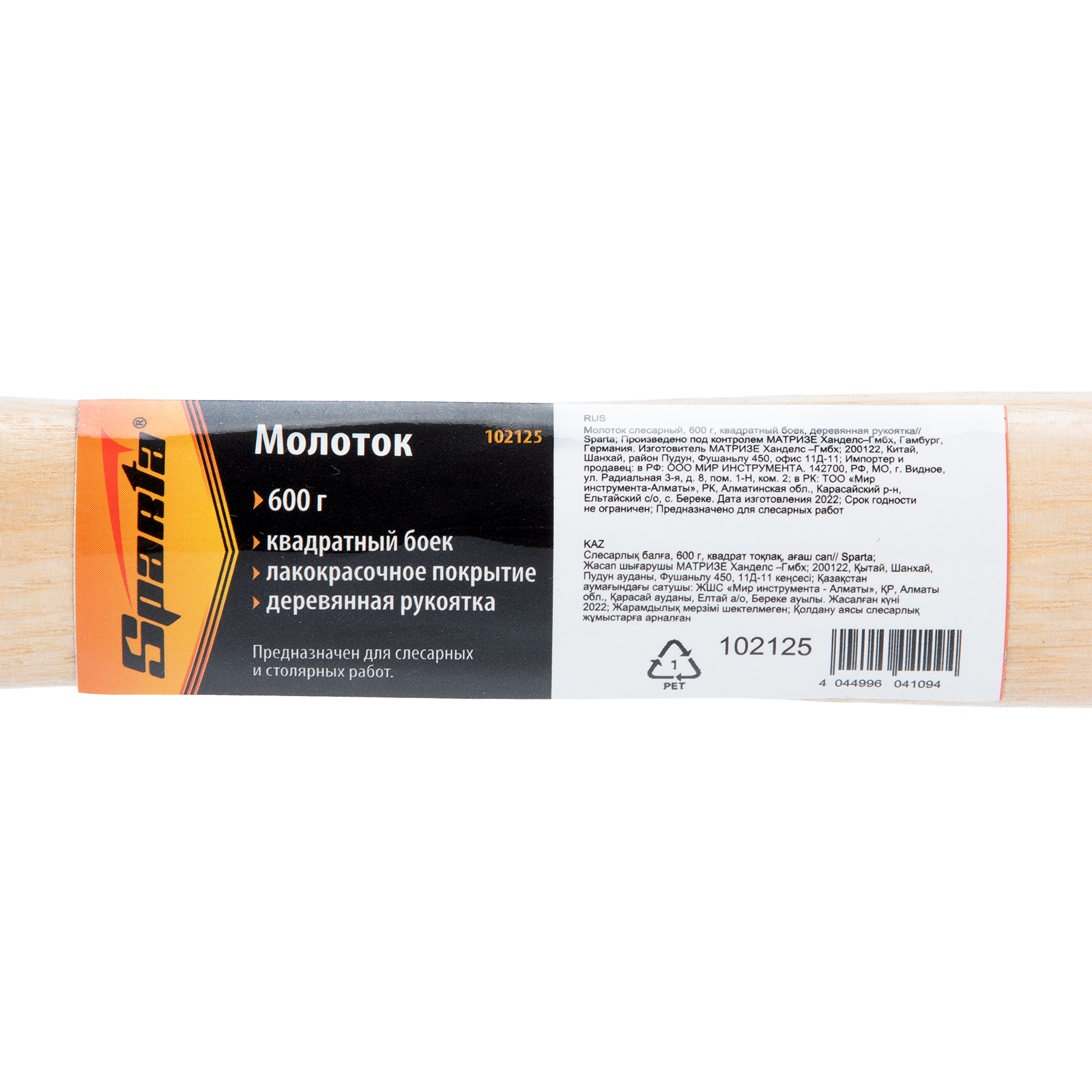 Молоток слесарный, 600 г, квадратный боек, деревянная рукоятка Sparta