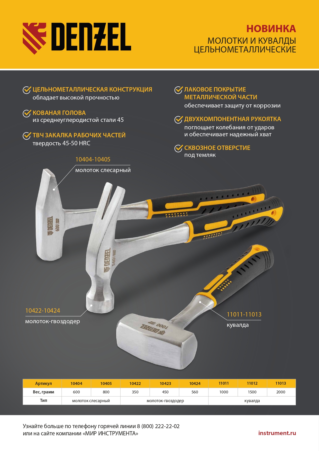 - Надежная конструкция — поломка цельнометаллического молотка исключена.