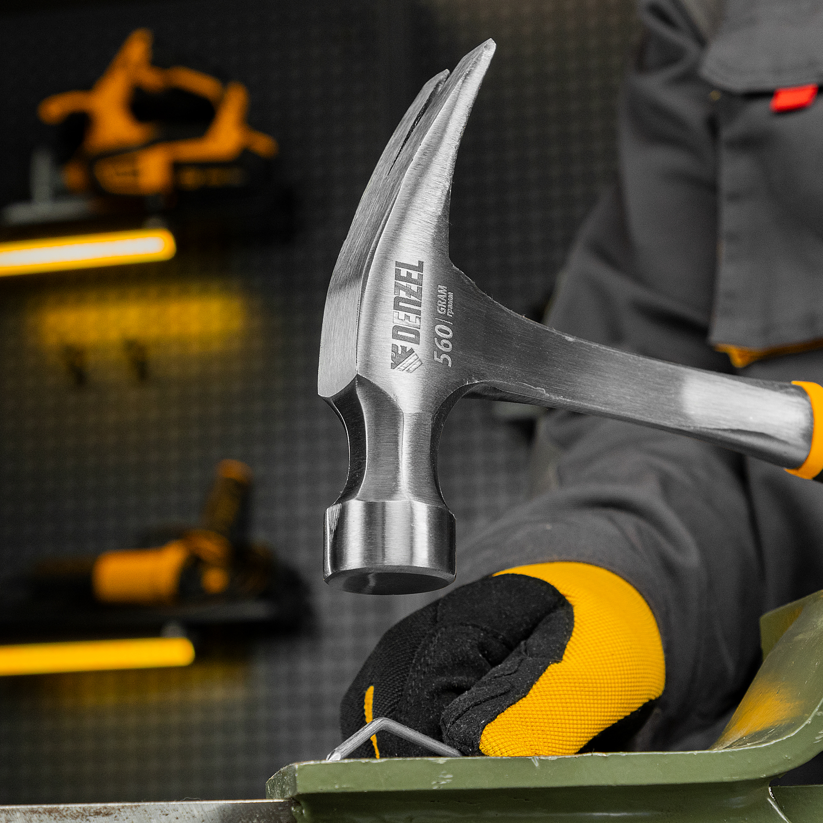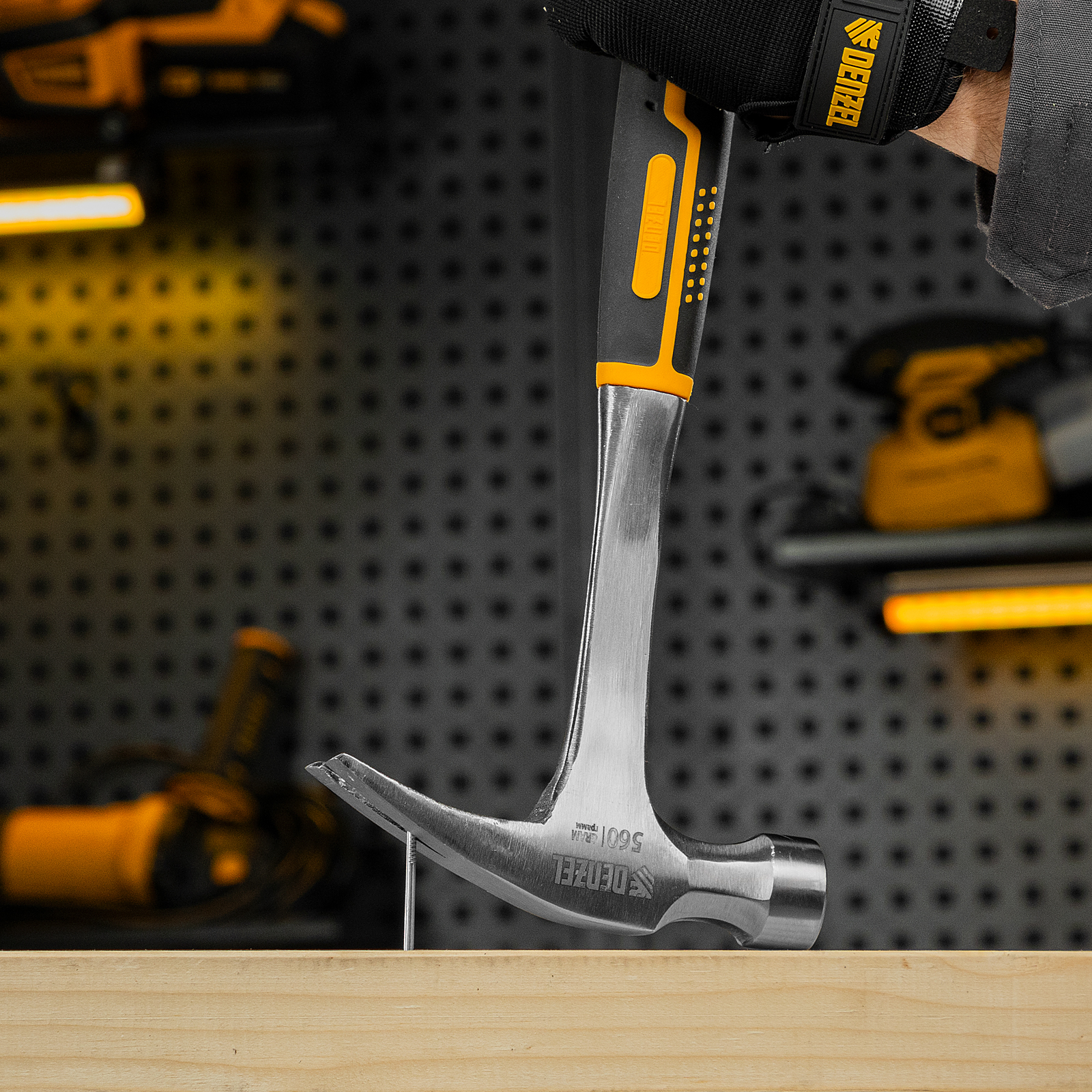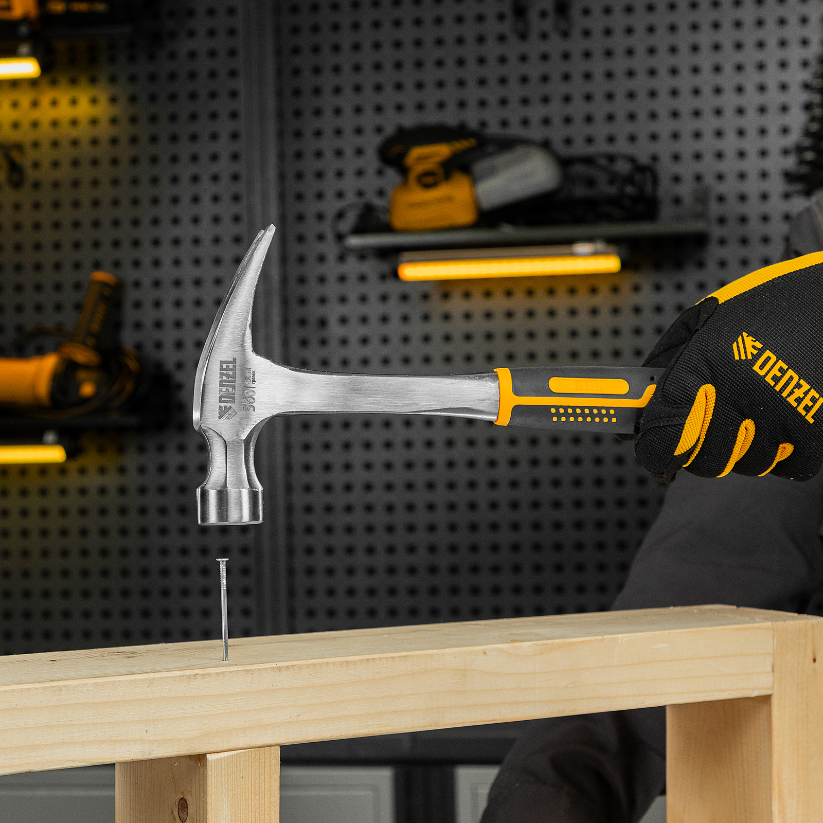 Молоток-гвоздодер 560 г, цельнометаллический, двухкомпонентная рукоятка Denzel