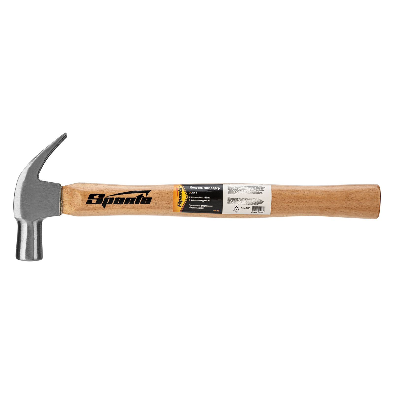Молоток-гвоздодер, 225 г, боек 22 мм, деревянная рукоятка Sparta