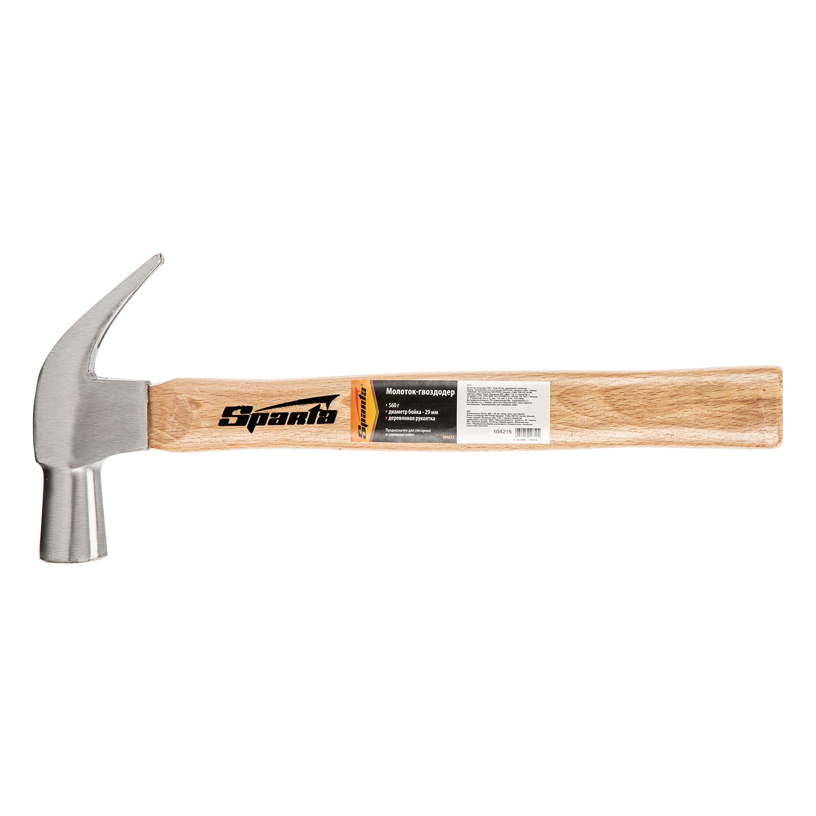Молоток-гвоздодер, 560 г, боек 29 мм, деревянная рукоятка Sparta