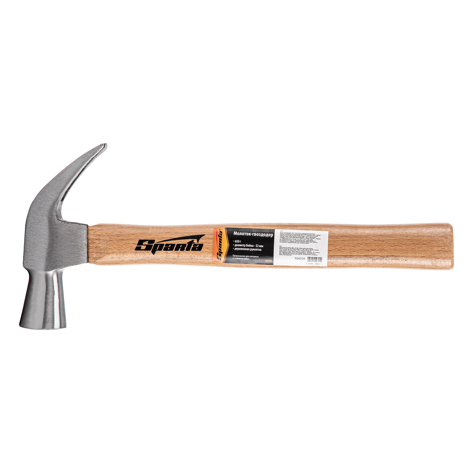 Молоток-гвоздодер, 650 г, боек 32 мм, деревянная рукоятка Sparta