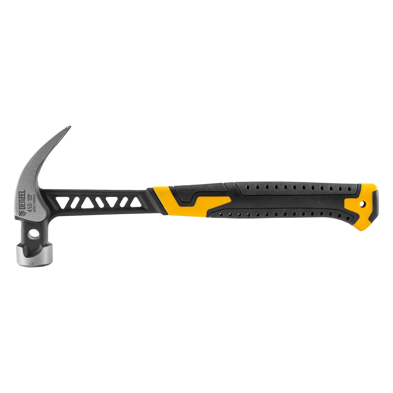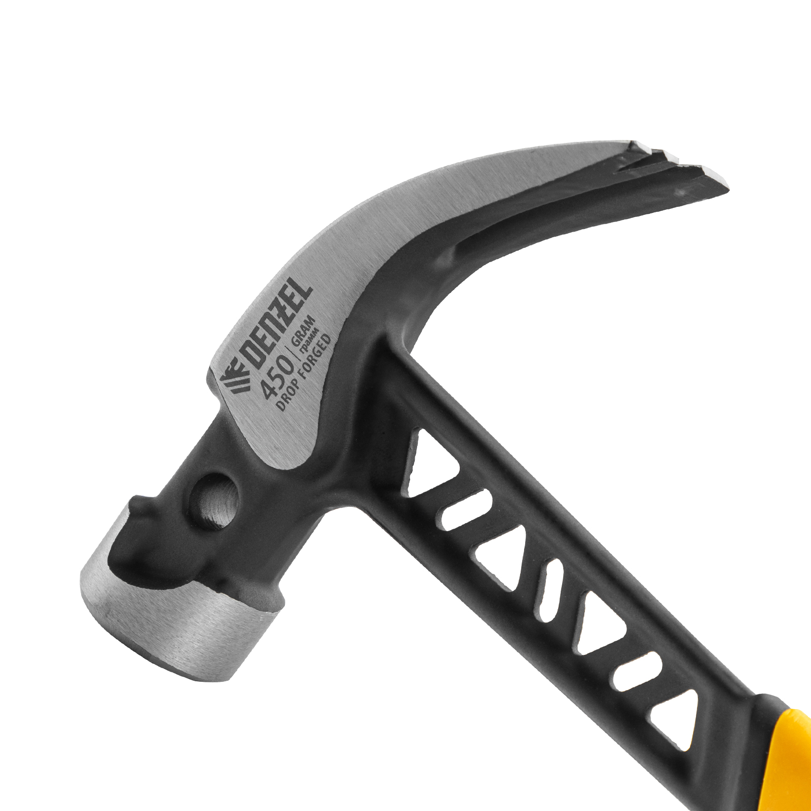 Молоток-гвоздодер 450 г, цельнокованый,боек с магнитом, двухкомп. обрезин. рук-ка Denzel