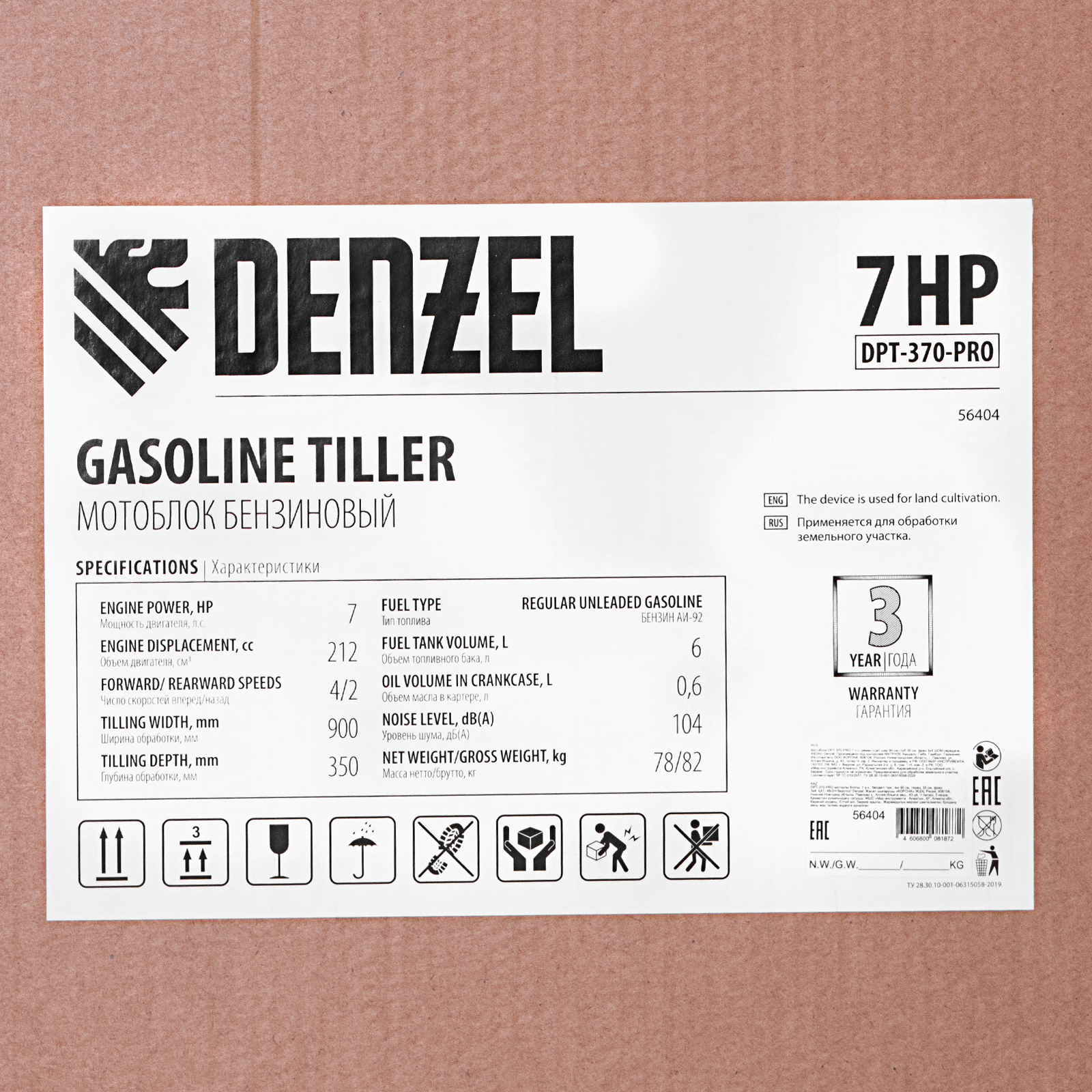 Мотоблок DPT-370-PRO, 7 л.с, ременное сцепление, ширина 90 см, глубина 35 см, фрез 3 х 4, ШОМ, передачи 4В/2Н Denzel в Казани