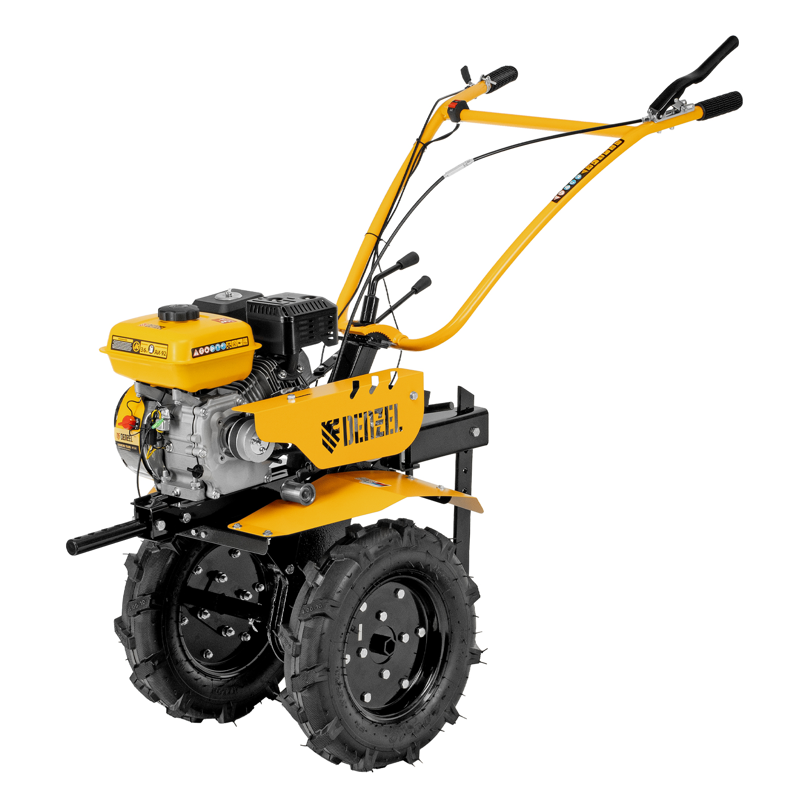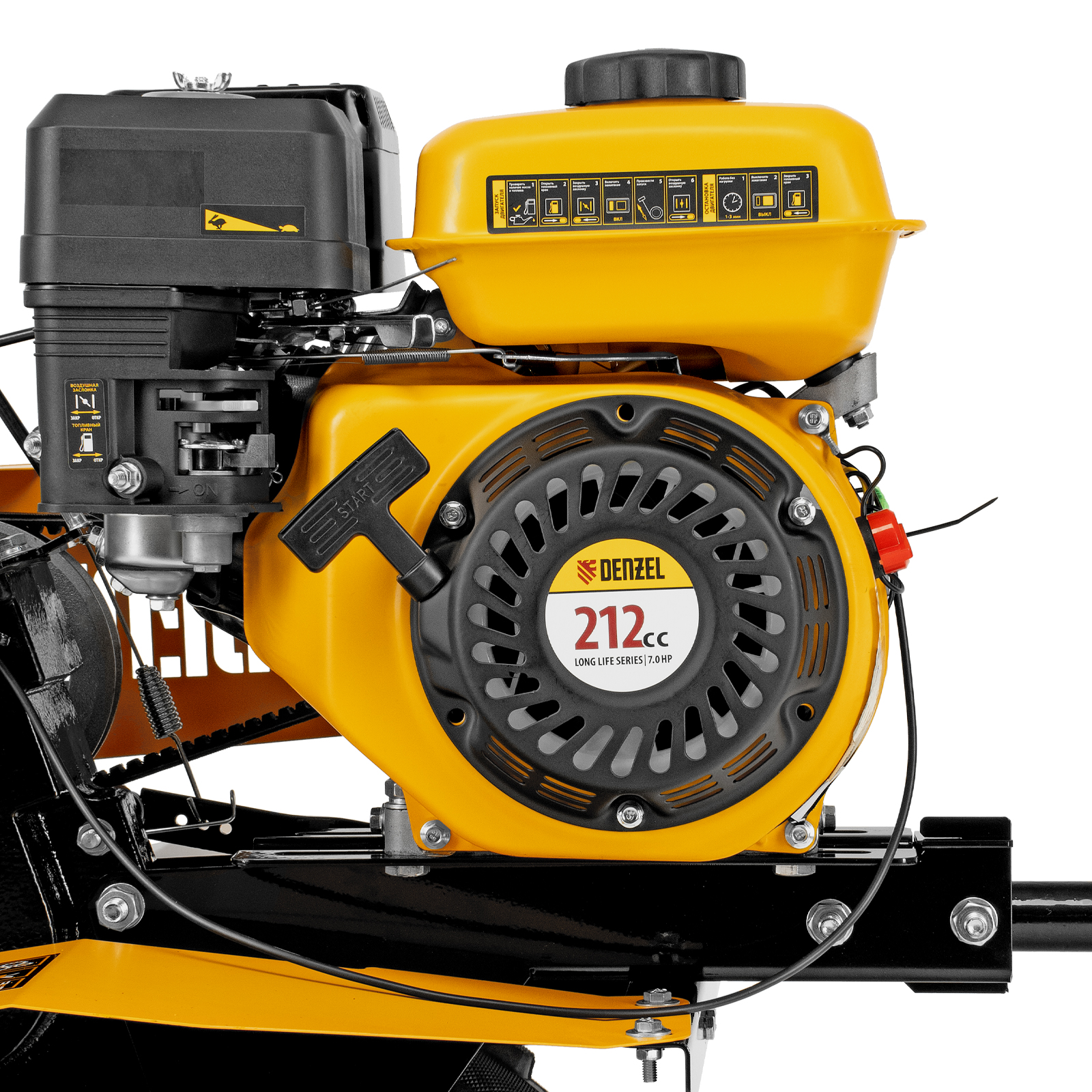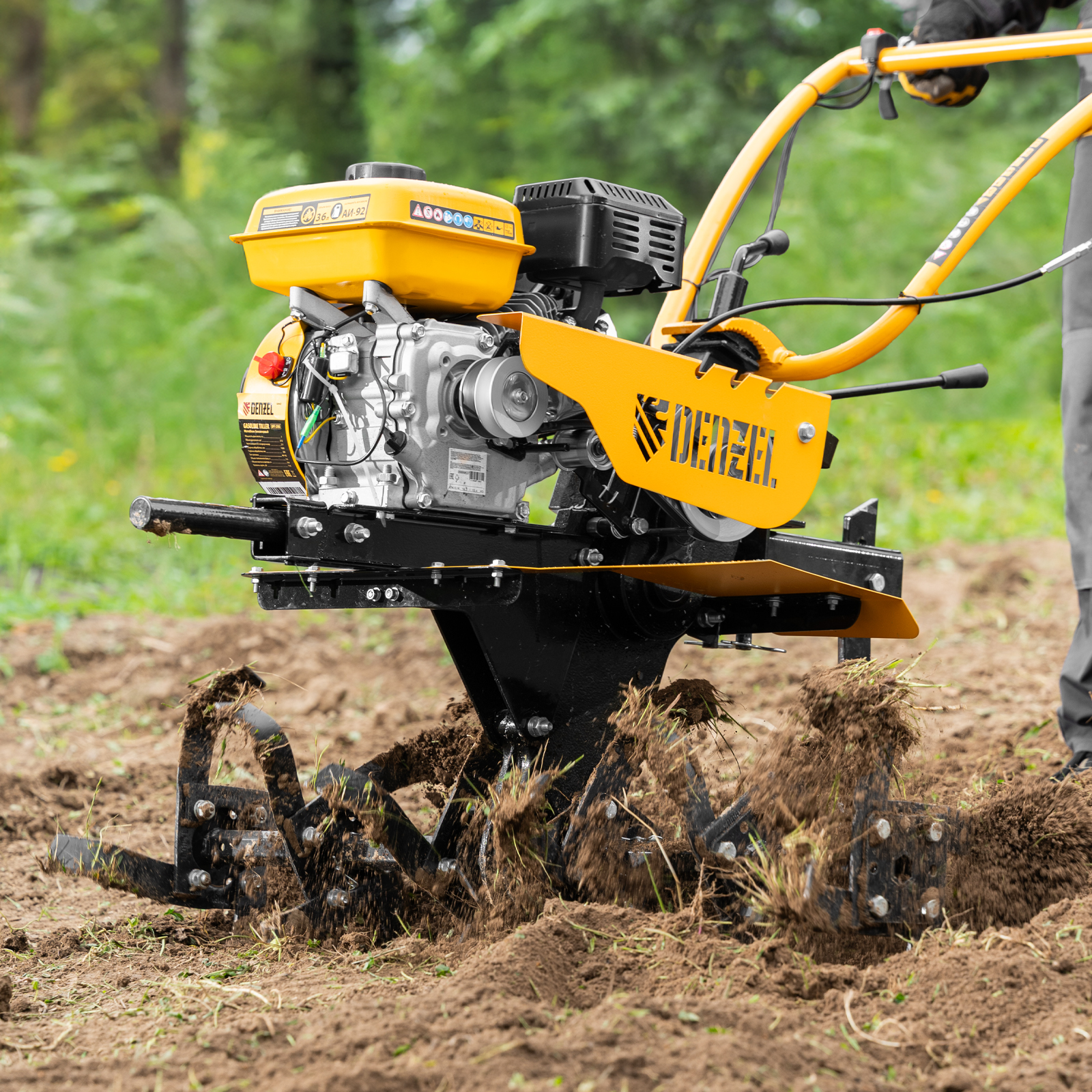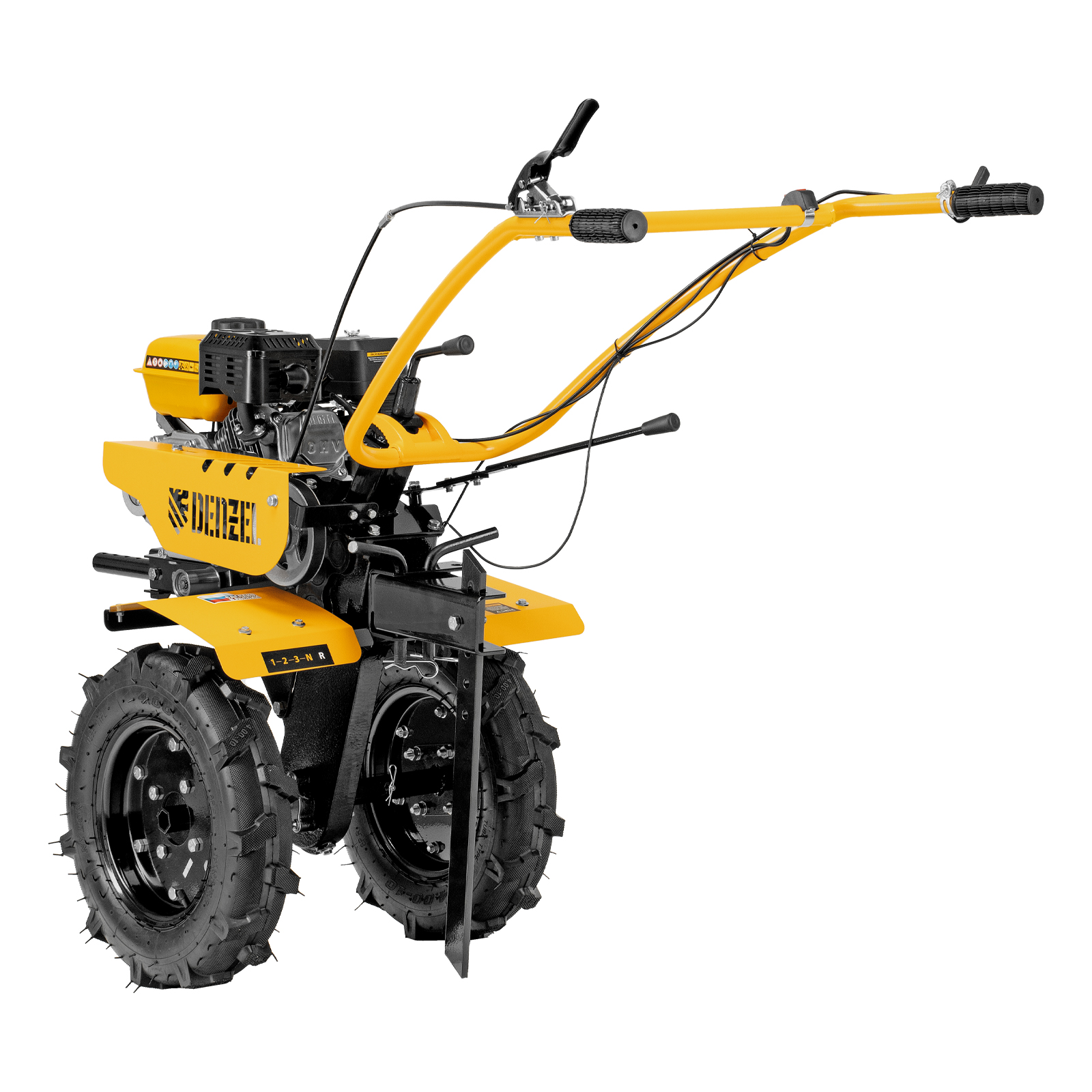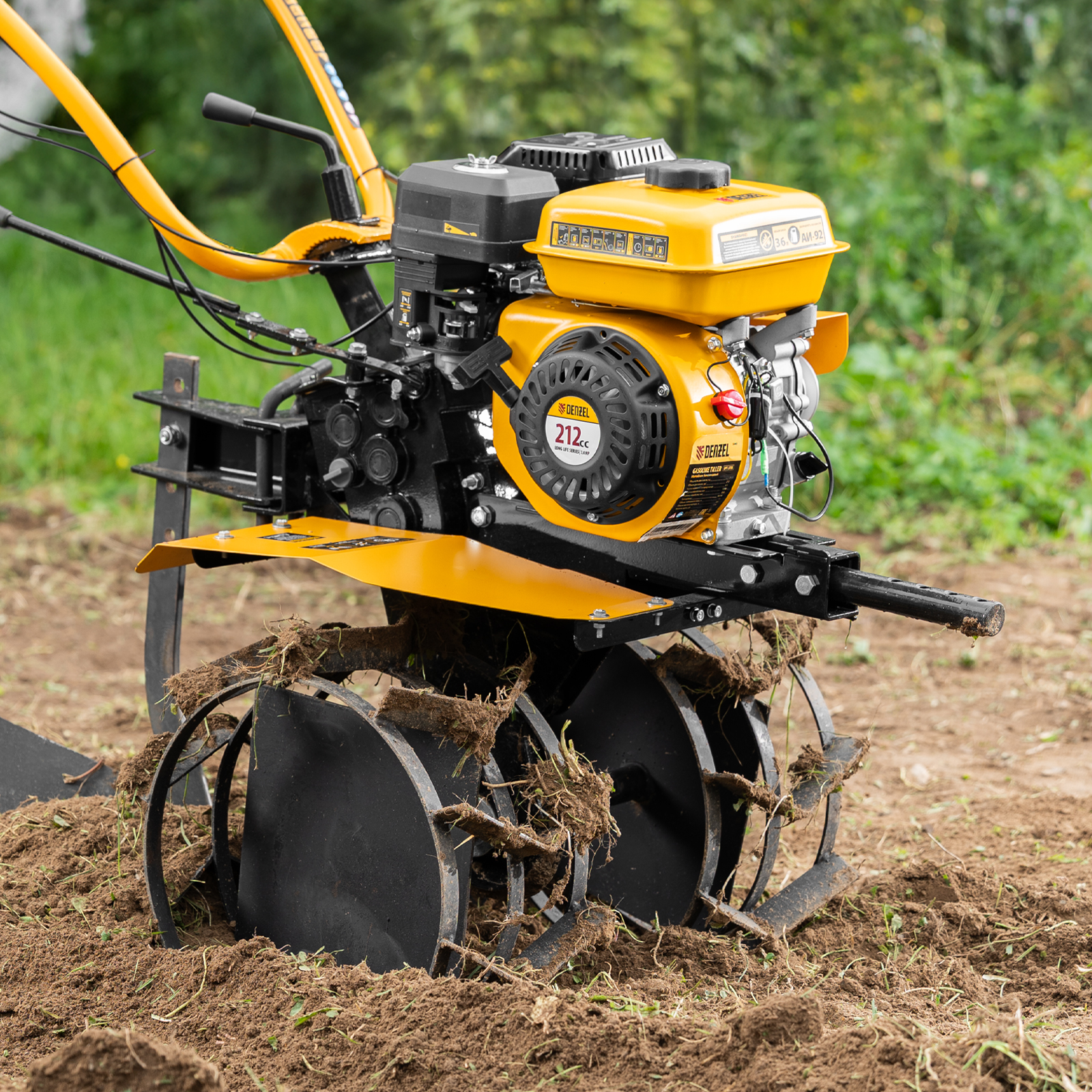 - Эффективная работа на любых типах грунта — мотоблок оснащен мощным и экономичным OHV-двигателем Denzel Long Life и стальными закаленными фрезами, не требующими заточки в течение всего срока эксплуатации.