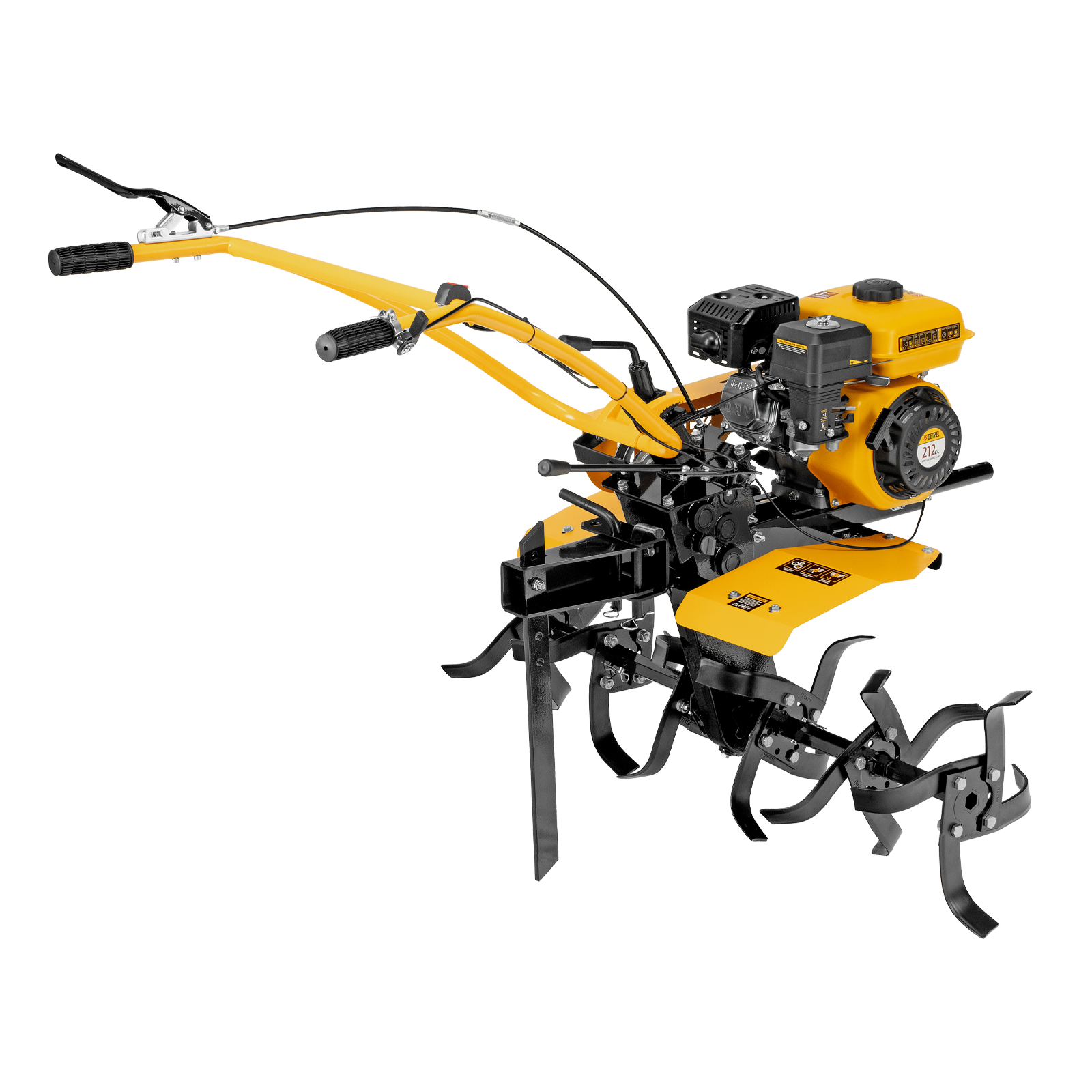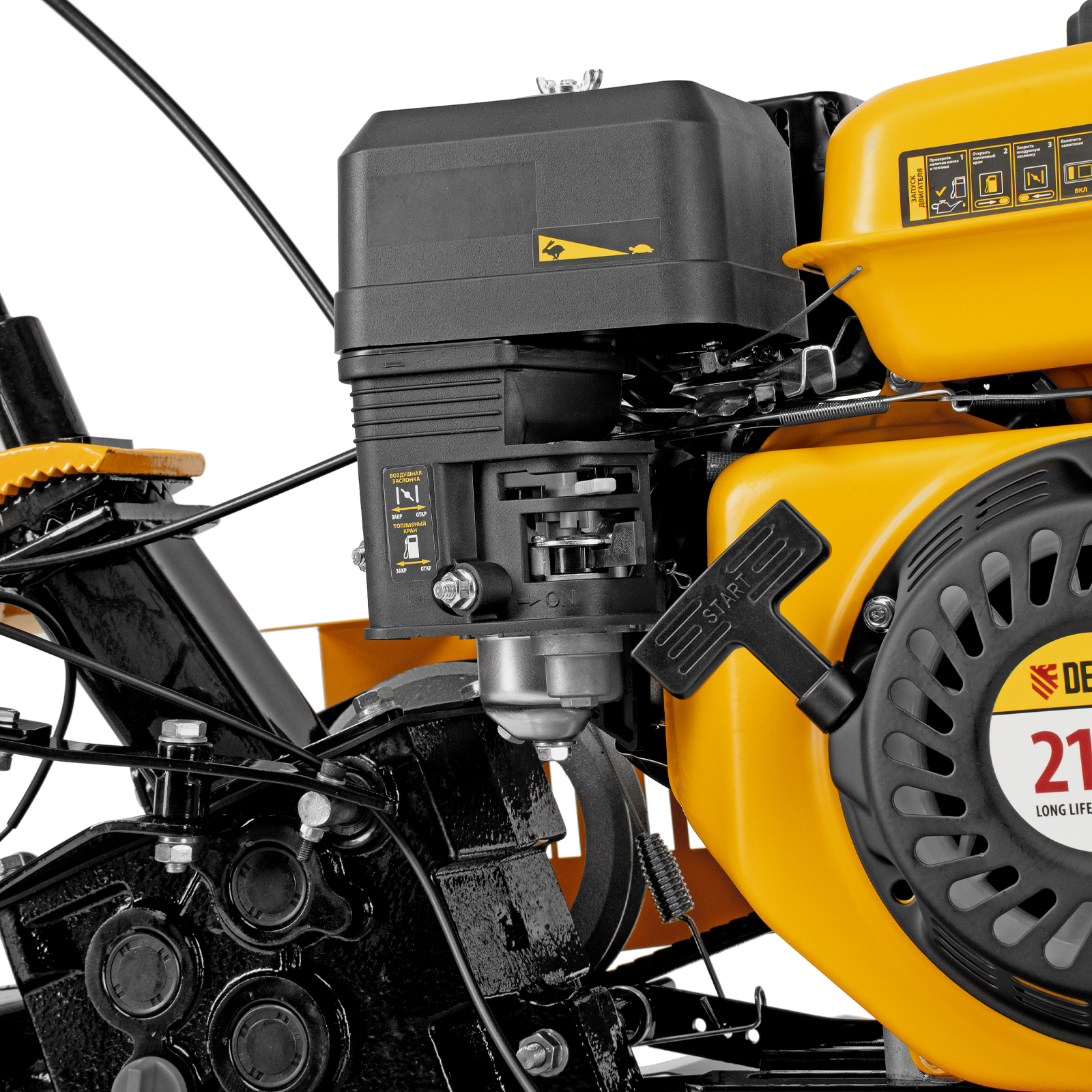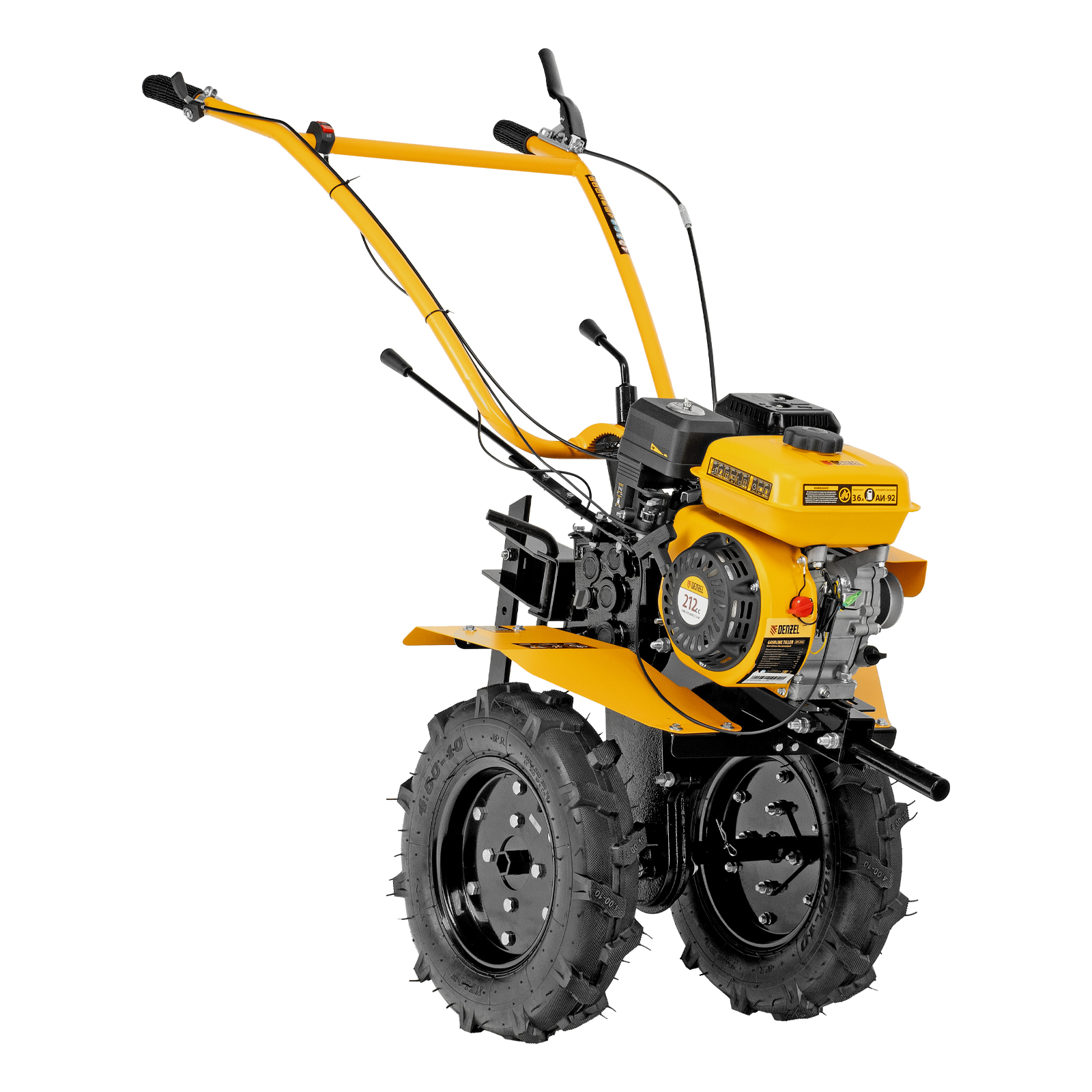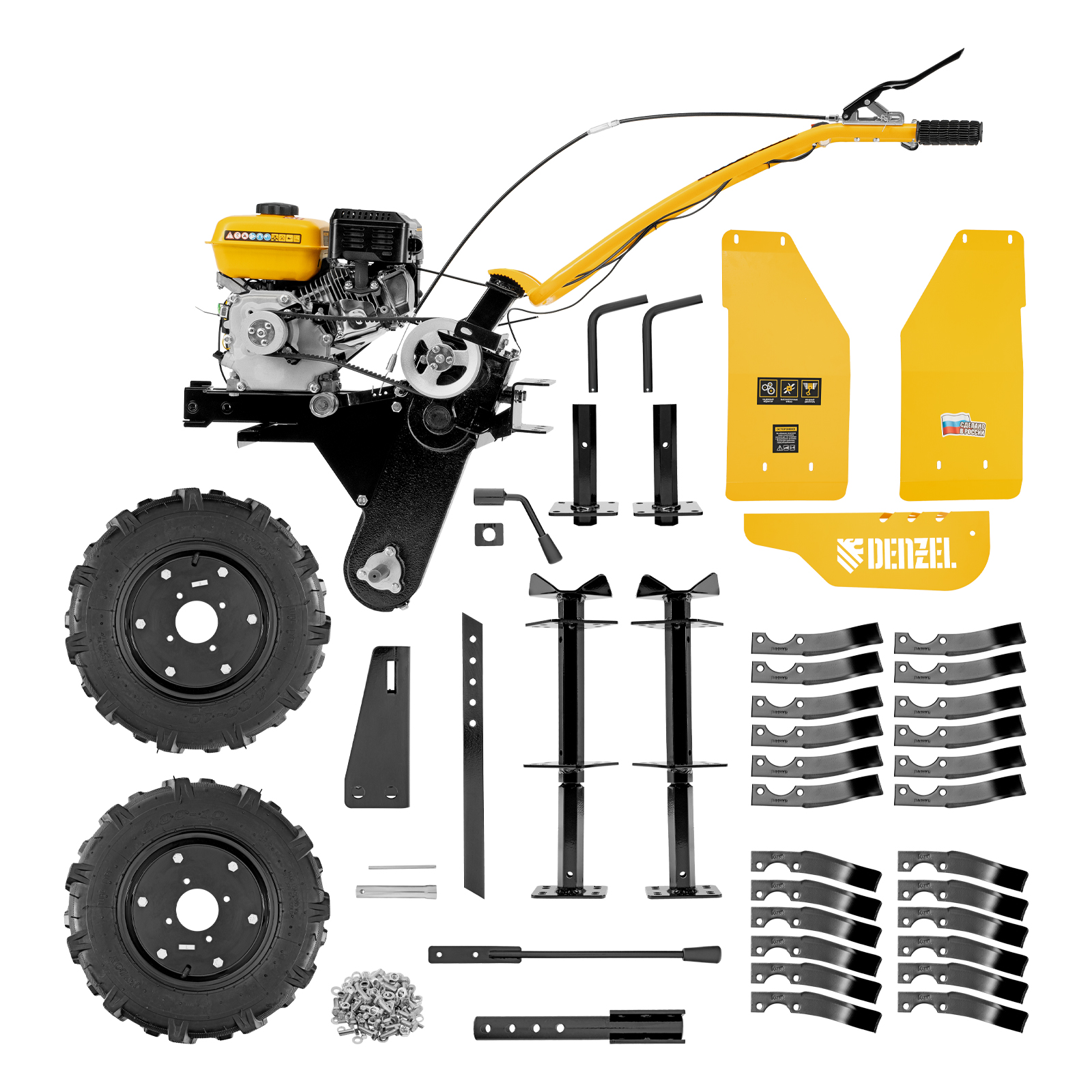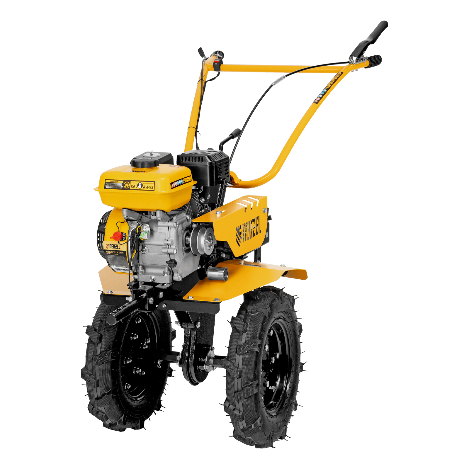 - Эффективная работа на любых типах грунта — мотоблок оснащен мощным и экономичным OHV-двигателем Denzel Long Life и стальными закаленными фрезами, не требующими заточки в течение всего срока эксплуатации.