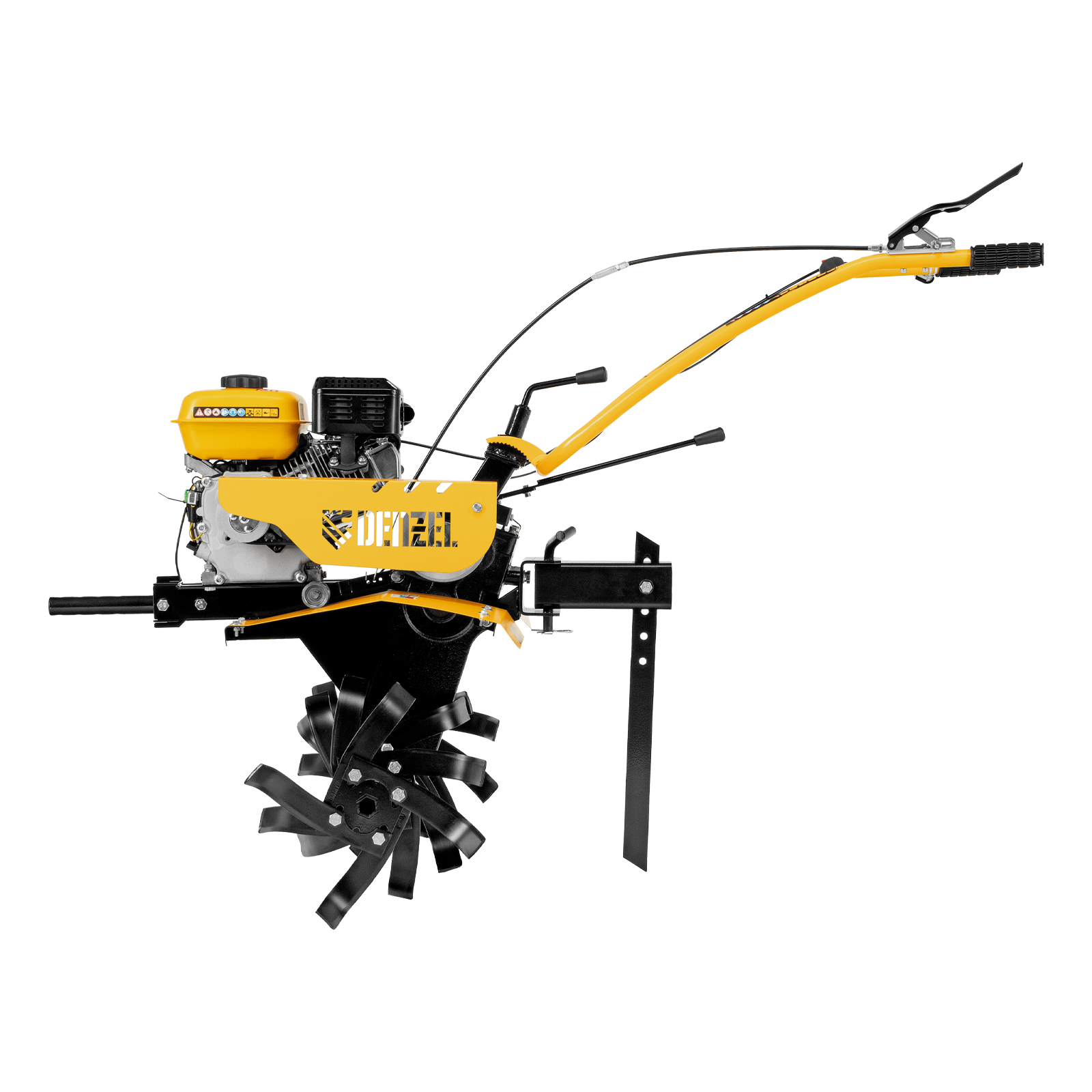 - Универсальность — мотоблок совместим со всеми моделями навесного оборудования, представленного в ассортименте Denzel (приобретается отдельно).