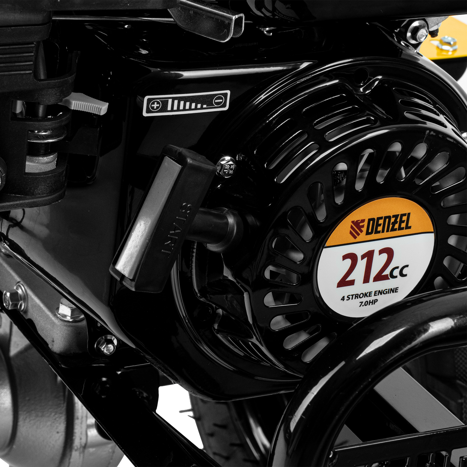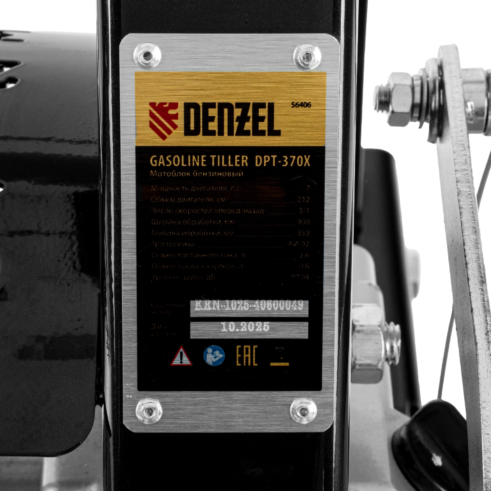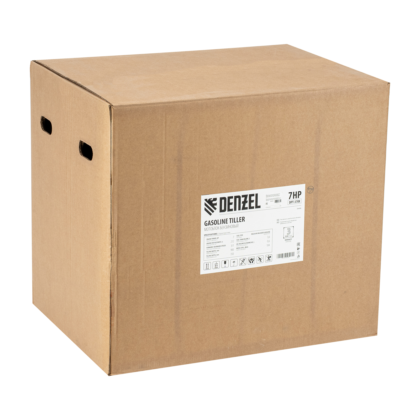 Мотоблок Denzel 56406 DPT-370X мощностью 7 л.с., с дисковым сцеплением, фрезами 3 х 4, валом отбора мощности (ВОМ), передачами 3В/1Н, имеет ширину вспахивания 90 см и глубину обработки 35 см. Предназначен для обработки почвы: рыхления, боронования, выравнивания, прополки и выполнения других задач на приусадебных и садовых участках, уверенно справляется с плотной глинистой почвой.,Мощный и экономичный одноцилиндровый четырехтактный двигатель Denzel серии Long Life с рабочим объемом 212 см3 отличается надежностью и продолжительным ресурсом. Многодисковый механизм сцепления обеспечивает передачу высокого крутящего момента на колеса. Мотоблок предназначен для работы на большой территории и широко используется в быту.