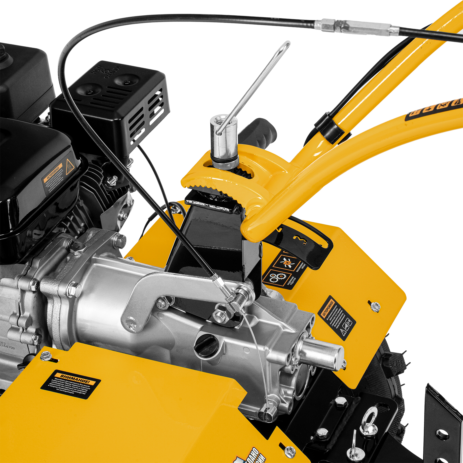 - Легкое управление — регулятор оборотов двигателя, выключатель зажигания и рычаг сцепления находятся на рукоятке перед пользователем.