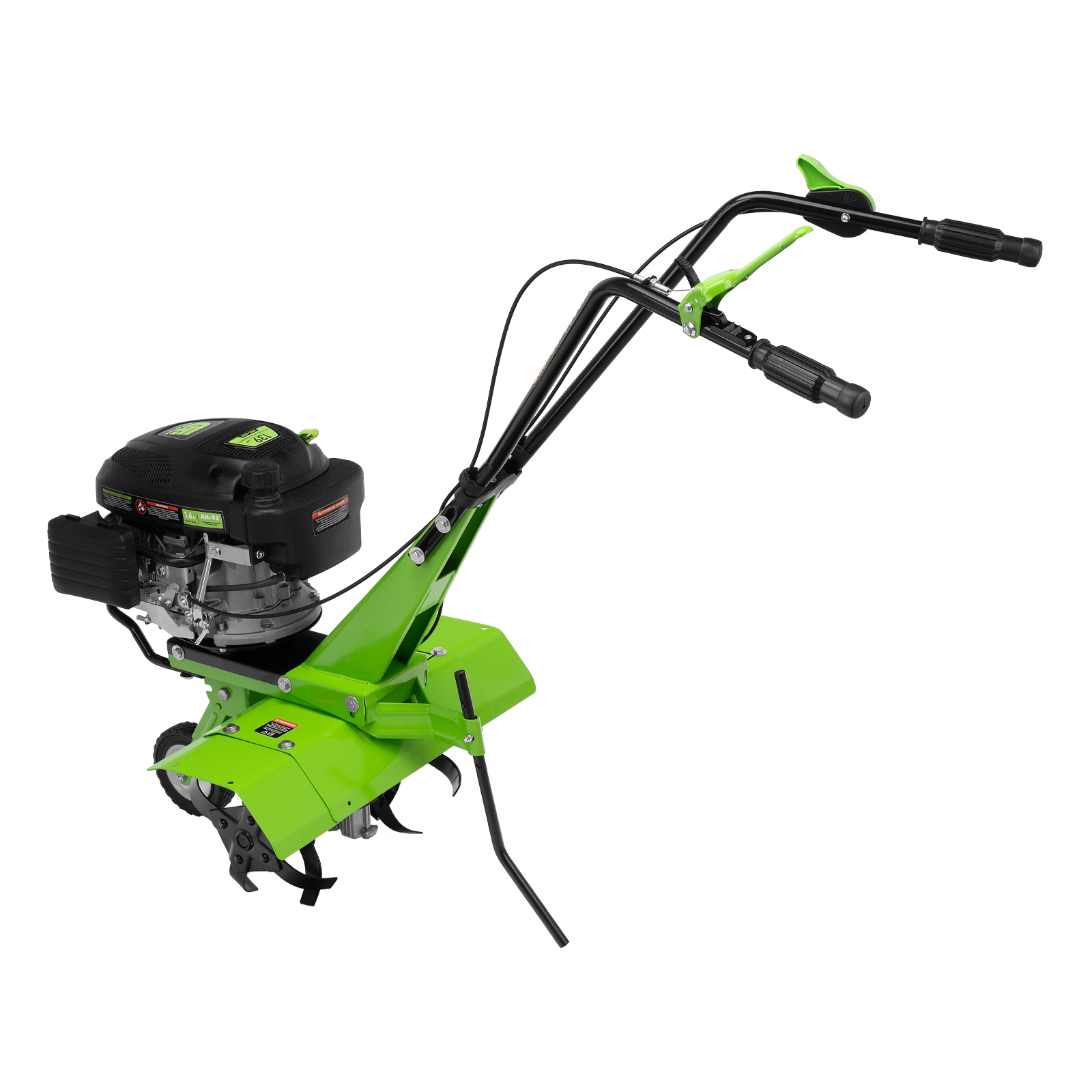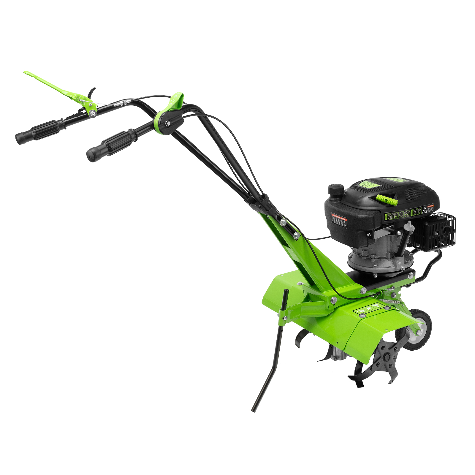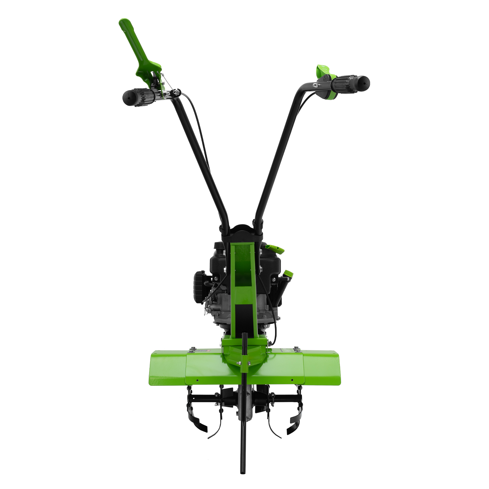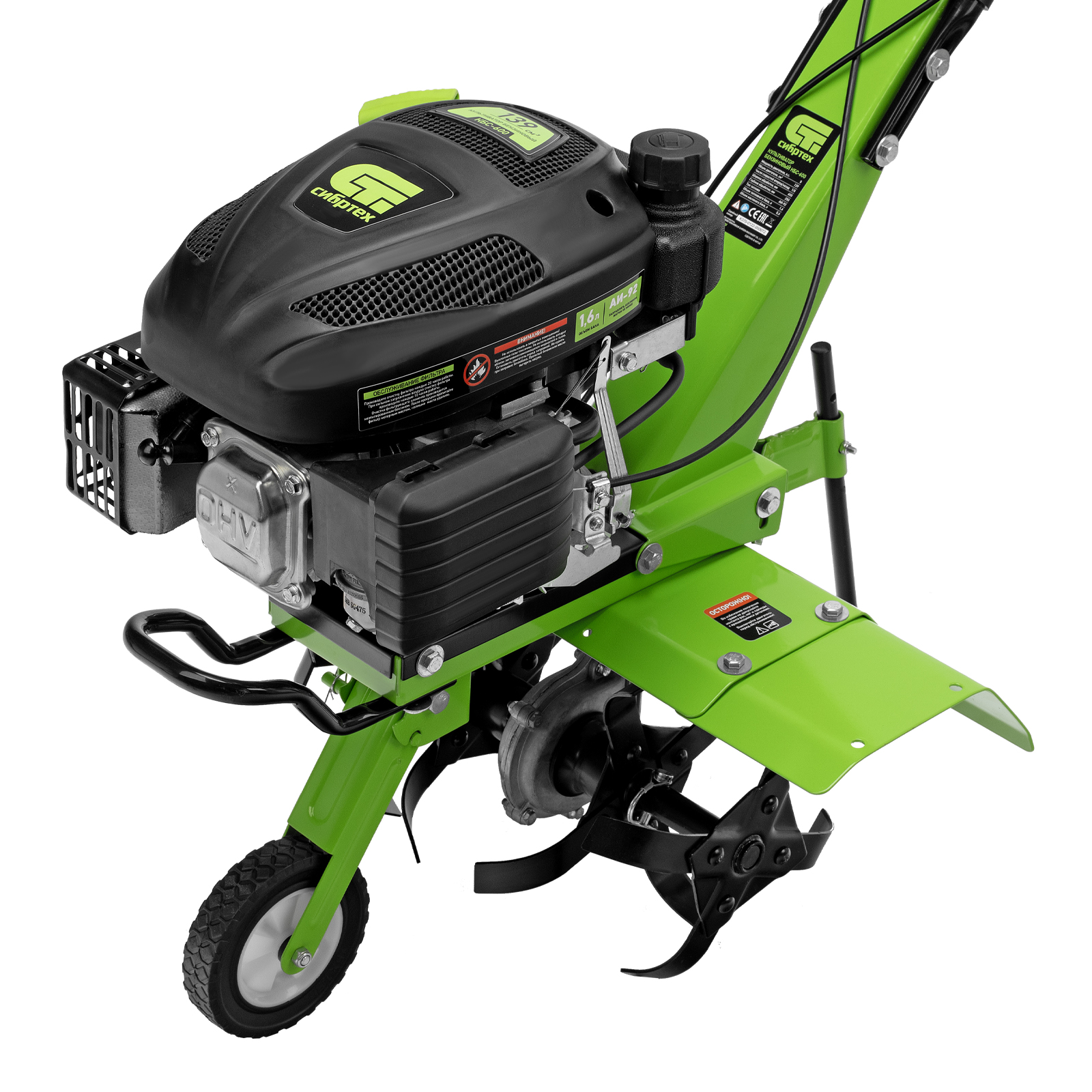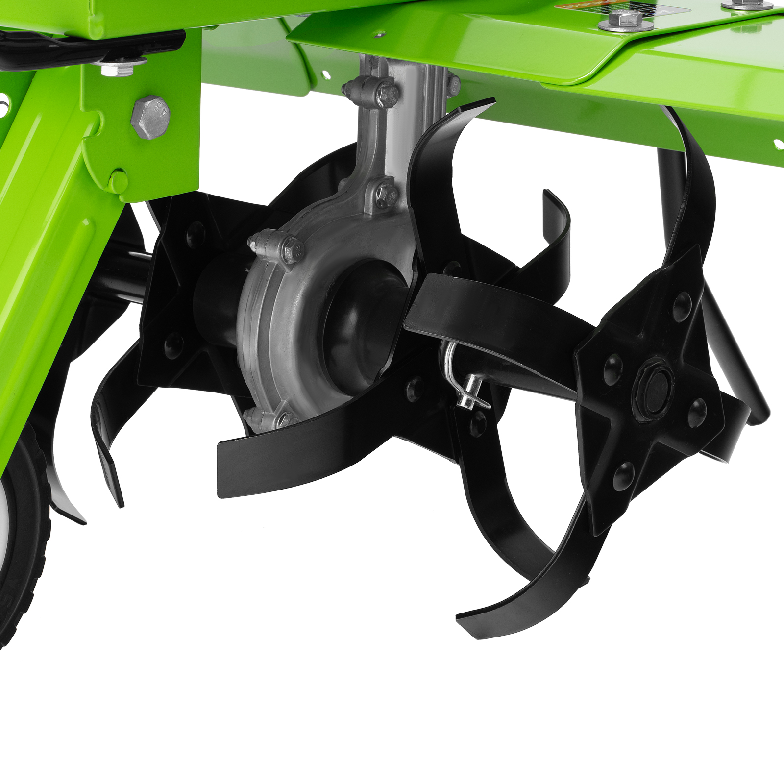 - Удобная транспортировка – 6-дюймовое колесо (15.24 см), вынесенное вперед, и рукоятка на корпусе позволяют быстро доставить культиватор в нужное место или убрать на длительное хранение.