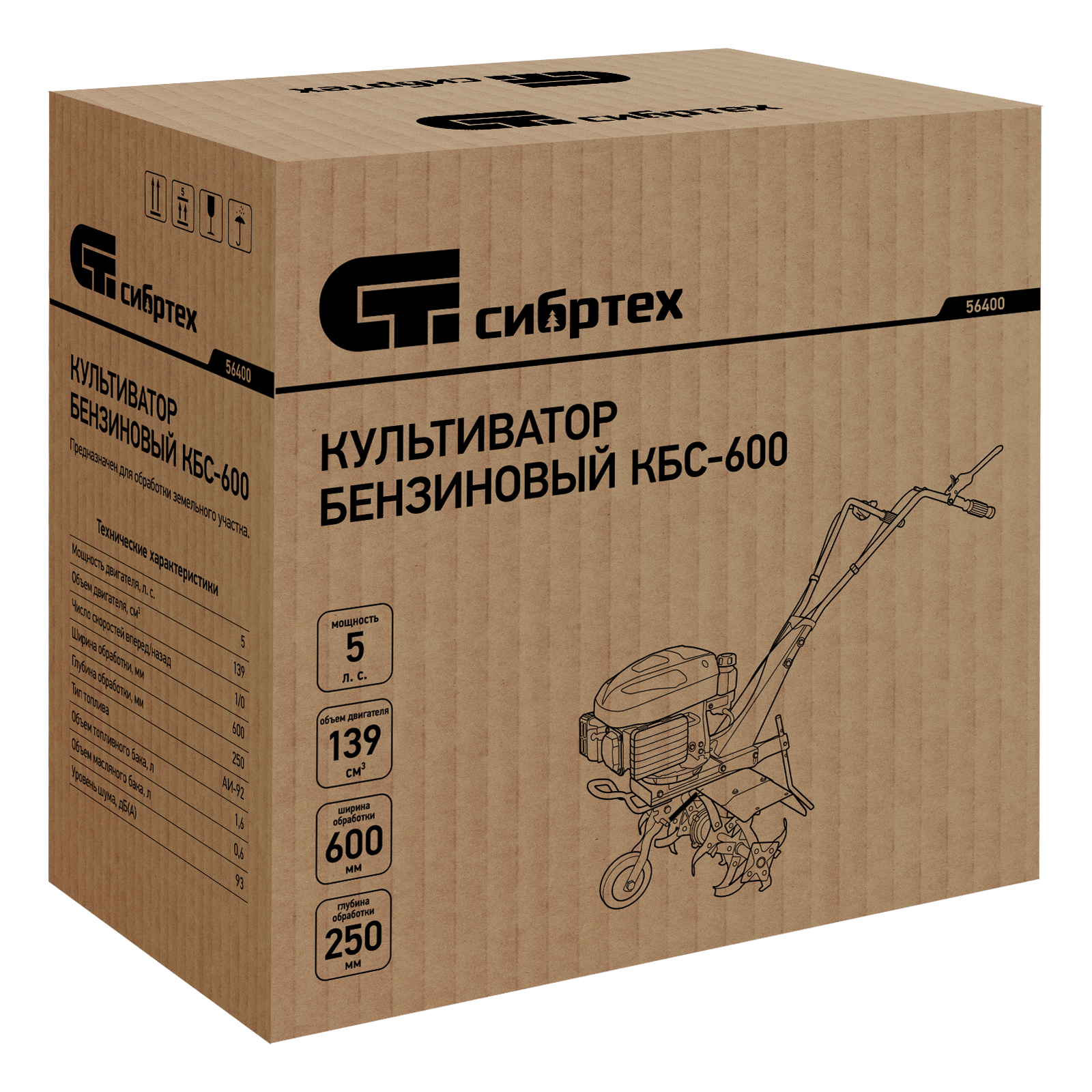 Мотокультиватор КБС-600, 5 л.с, 139 куб.см, ширина 60 см, фрез 3 x 4, передачи 1В Сибртех в Казани