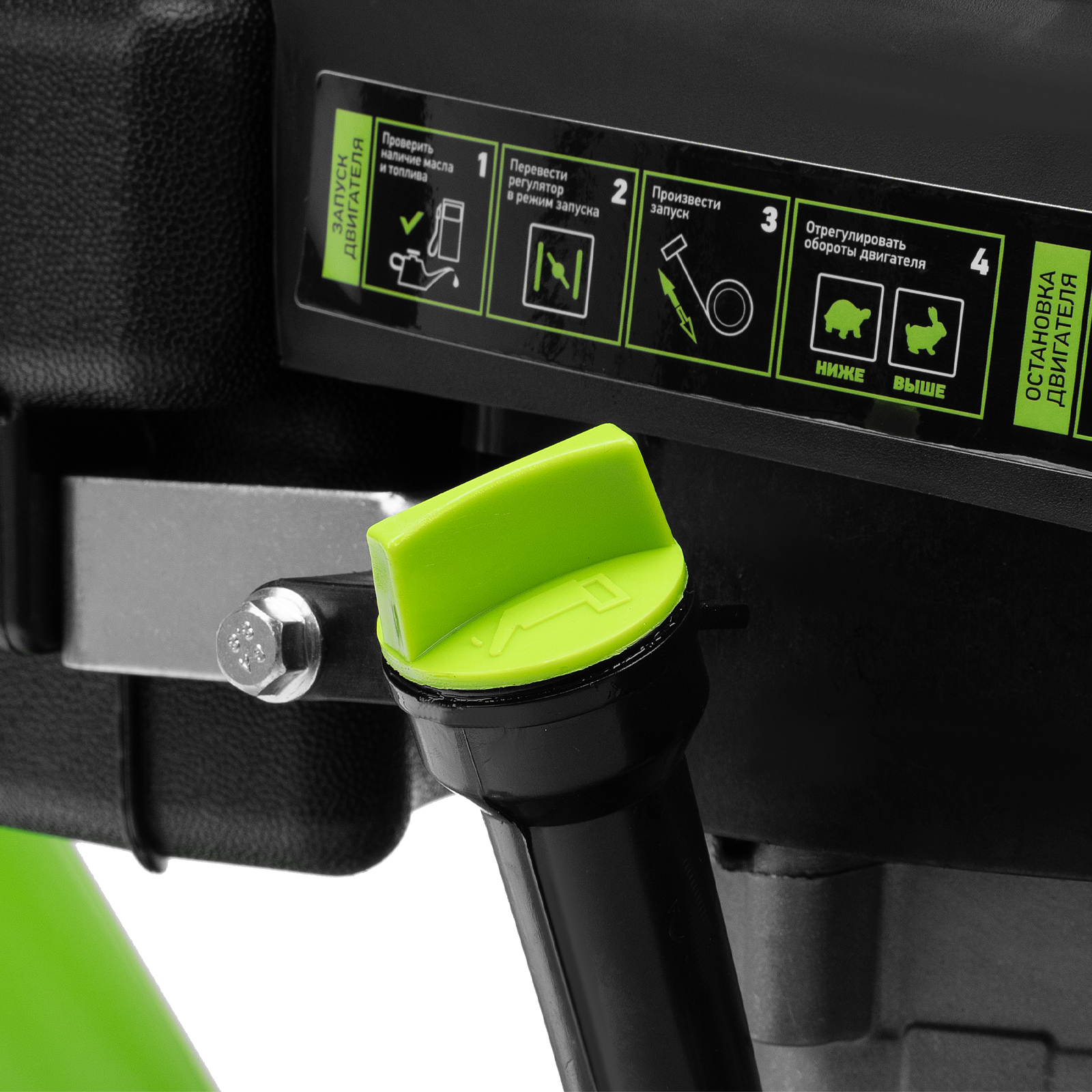 - Сочетание мощи и легкости – несмотря на высокий потенциал двигателя, вес изделия составляет 35.6 кг, что позволяет легко маневрировать между клумбами, кустами или деревьями.