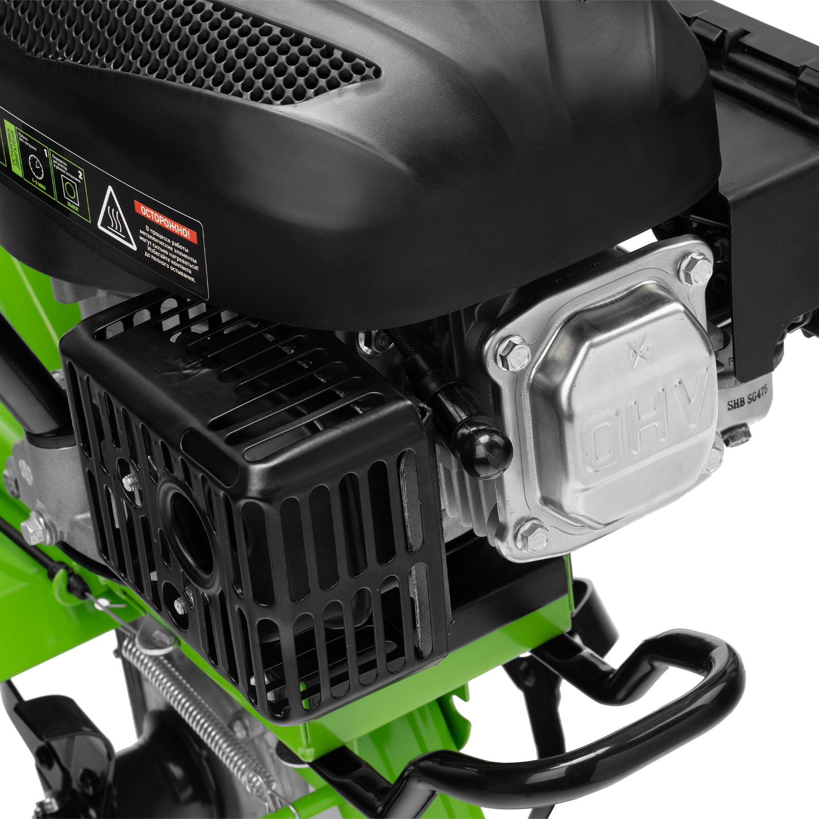 - Безопасная культивация – специальный щиток на корпусе предотвращает попадание земли, камней и прочих предметов с движущихся фрез на пользователя.