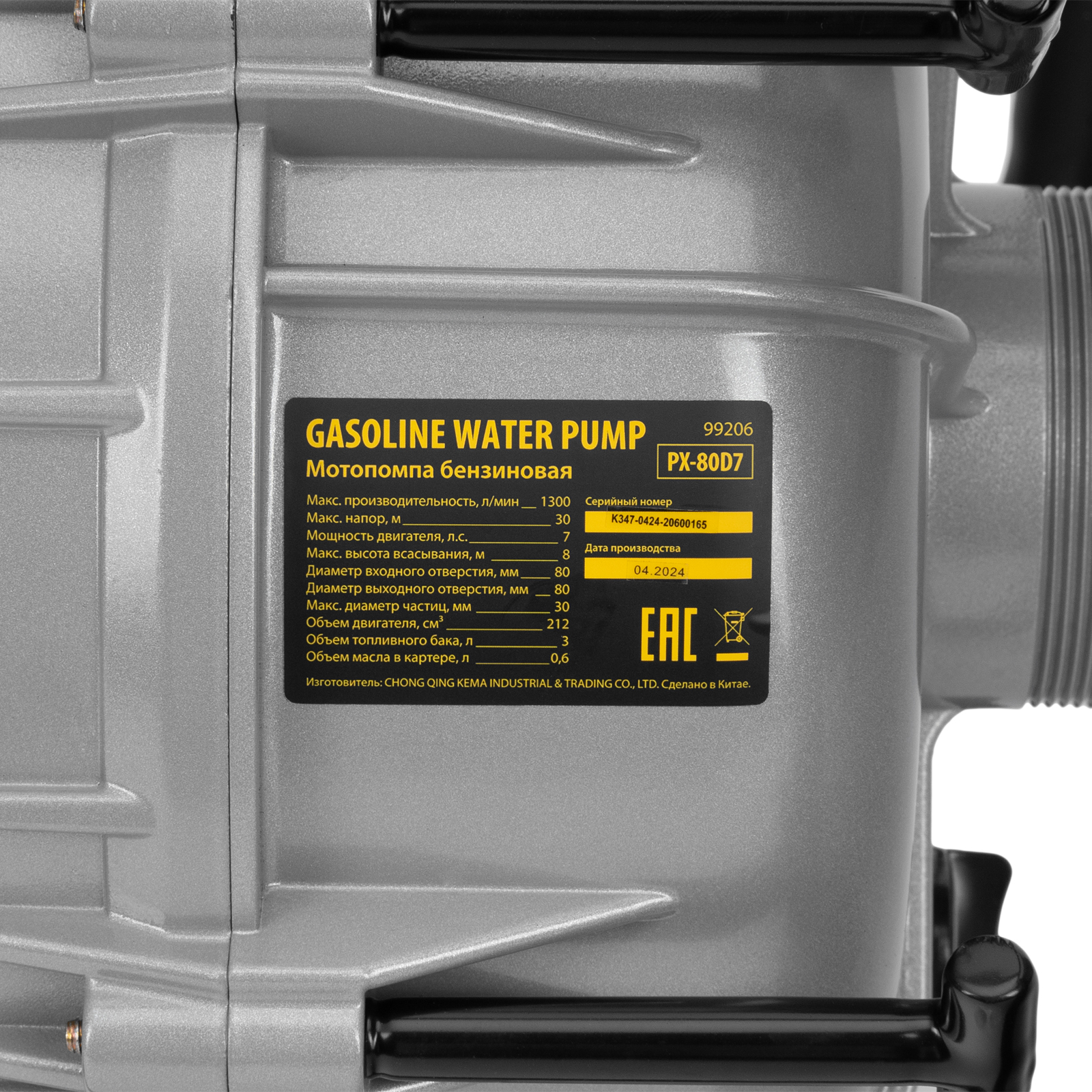 Мотопомпа бензиновая для грязной воды PX-80D7, 7 л.с., 3", 1300 л/мин, глуб 8 м,напор 30 м Denzel в Казани