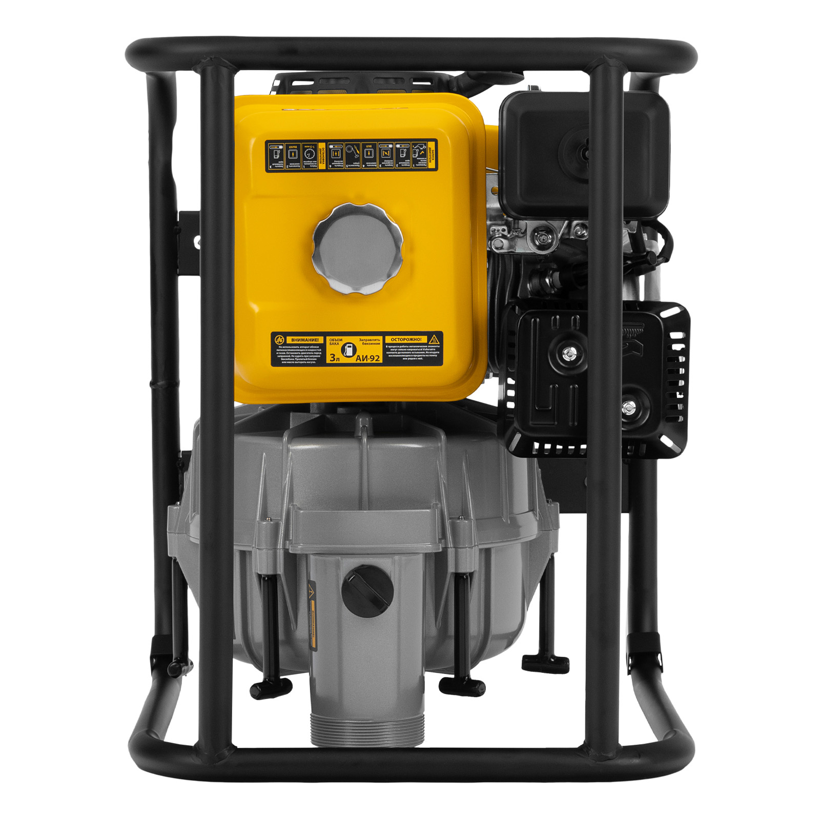- Устойчивость — широкое основание позволяет установить мотопомпу даже на неровной поверхности.