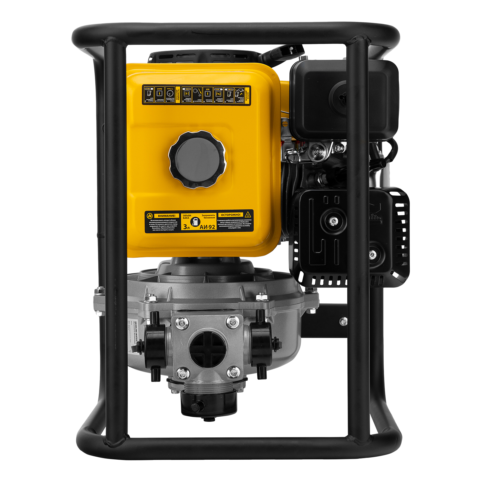 - Надежность — мощная стальная рама защищает мотопомпу от повреждений.