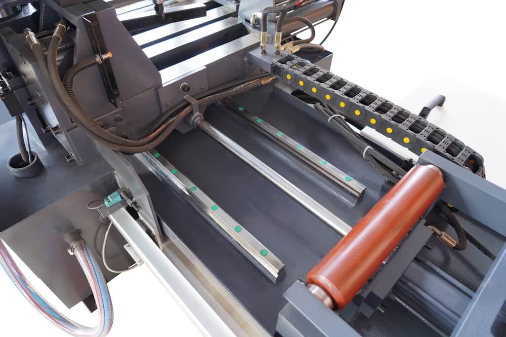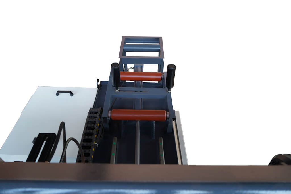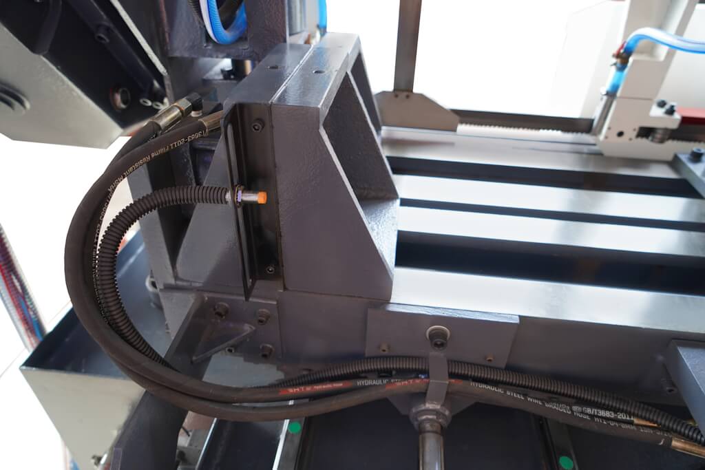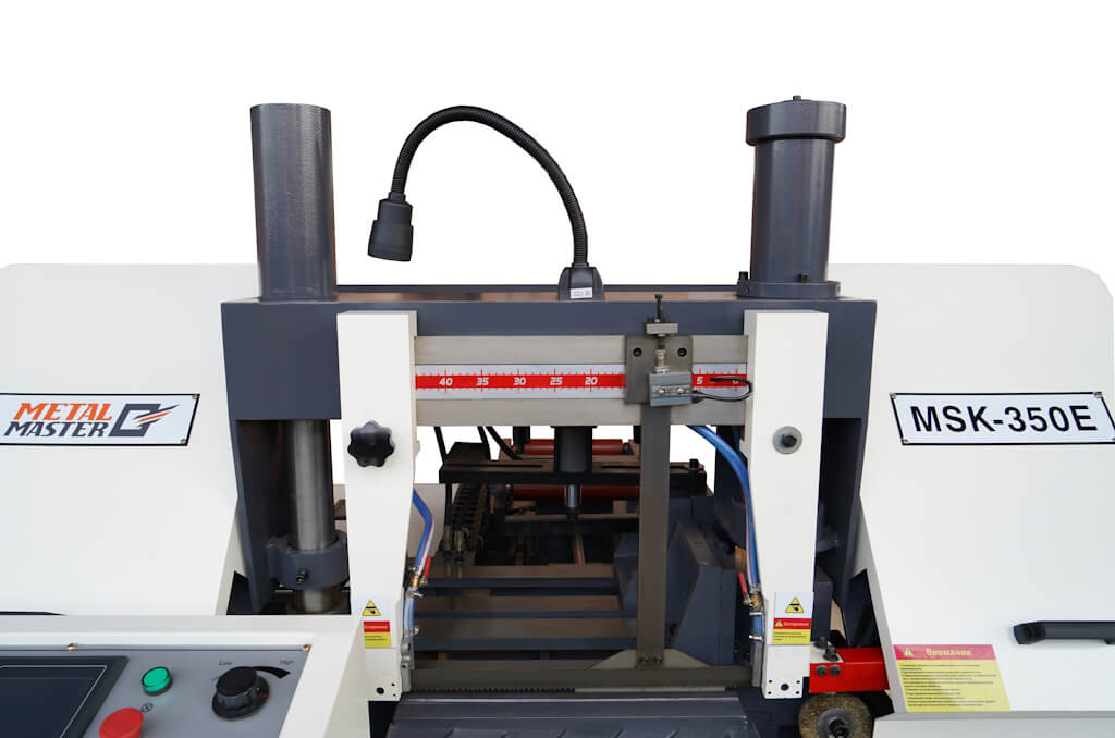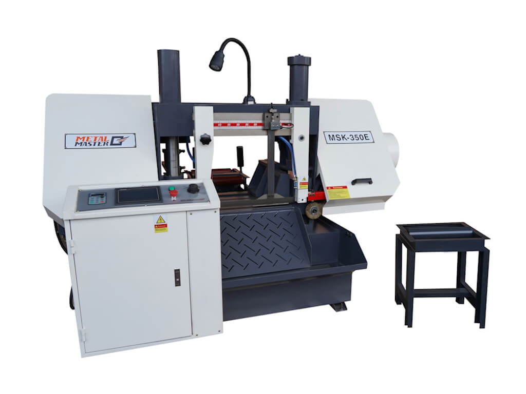 Станок Metal Master MSK 350 Е является автоматическим двухколонным горизонтальным ленточнопильным станком. Данная модель предназначена для автоматической обработки различного вида труб, профилей и сплошных заготовок под углом 90° и максимальным сечением 350х350 мм.