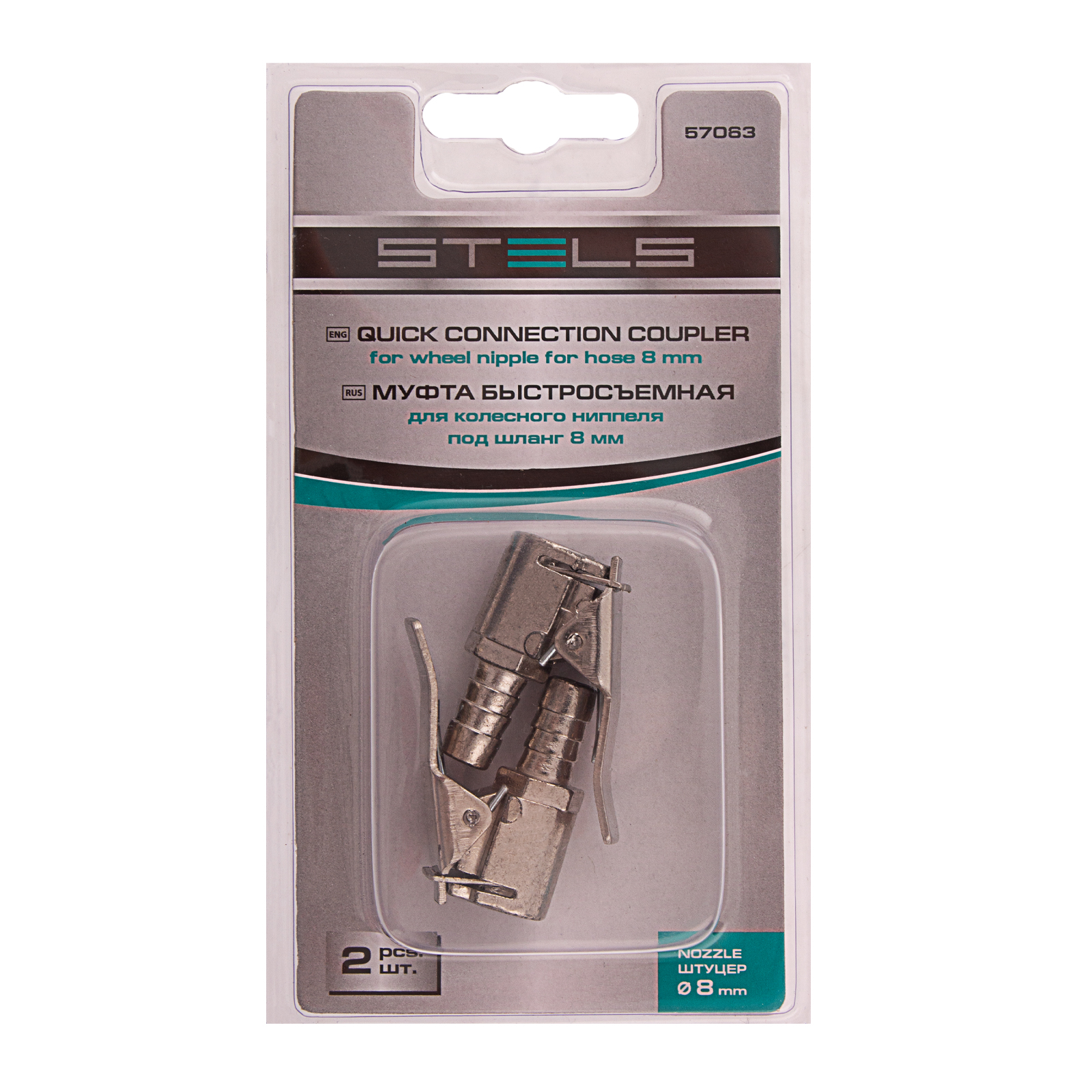 Муфта быстросъемная для колесного ниппеля со штуцером "елка" под шланг 8 мм, 2 шт, Stels