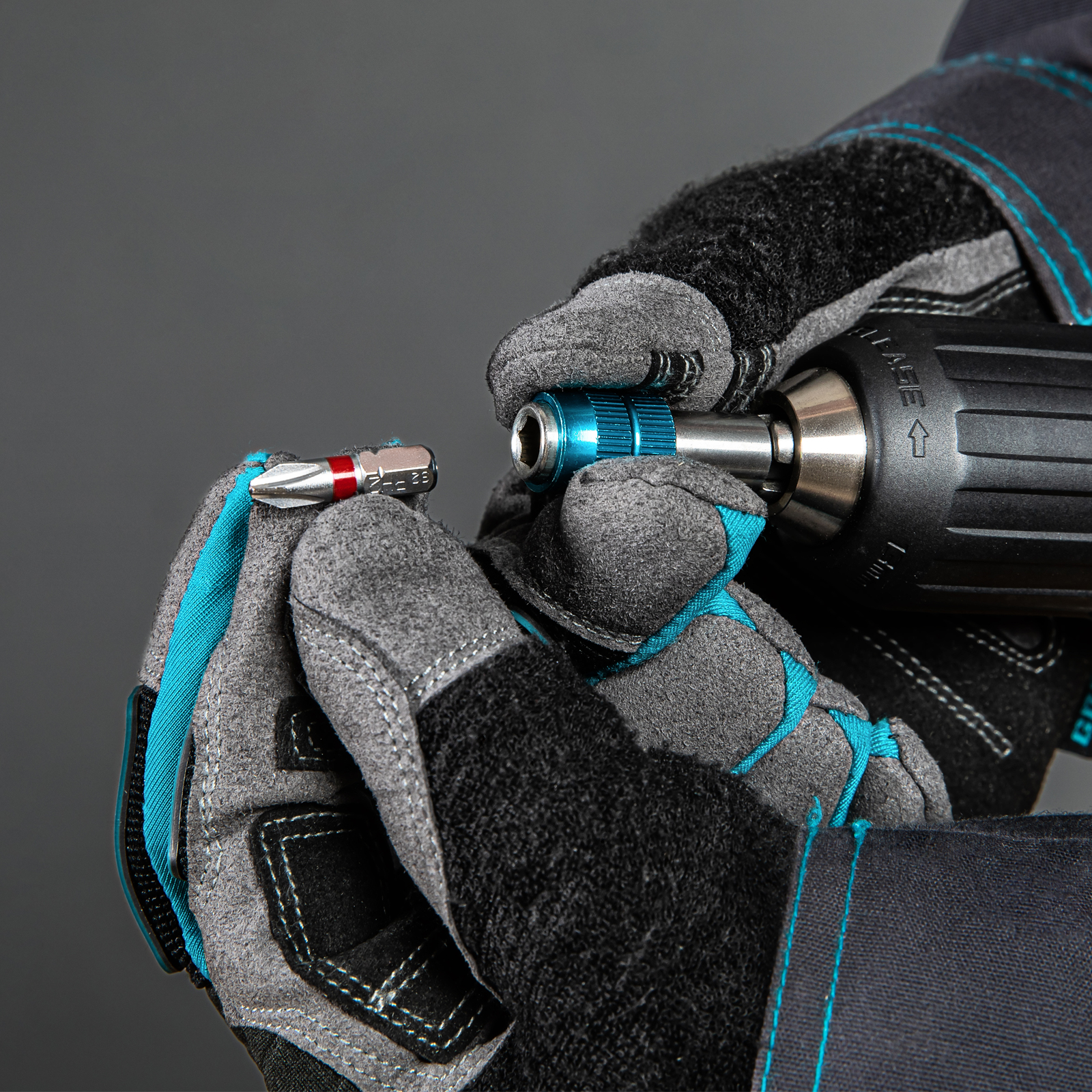 - Удобная работа даже в труднодоступных местах — битодержатель с магнитом и быстрозажимным механизмом обеспечивает устойчивую фиксацию насадок.