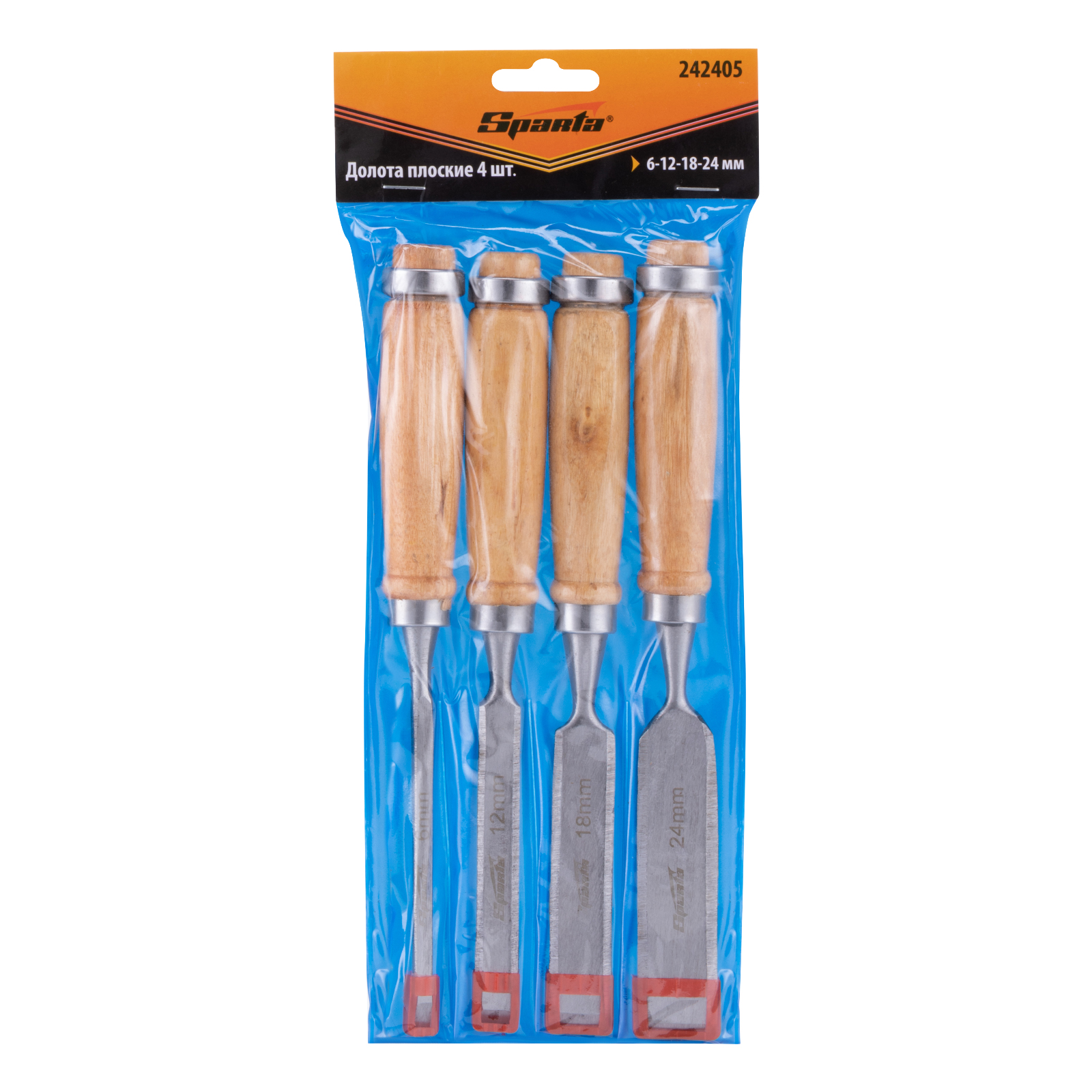 Набор долот-стамесок, 6-12-18-24 мм, плоских, деревянные рукоятки Sparta