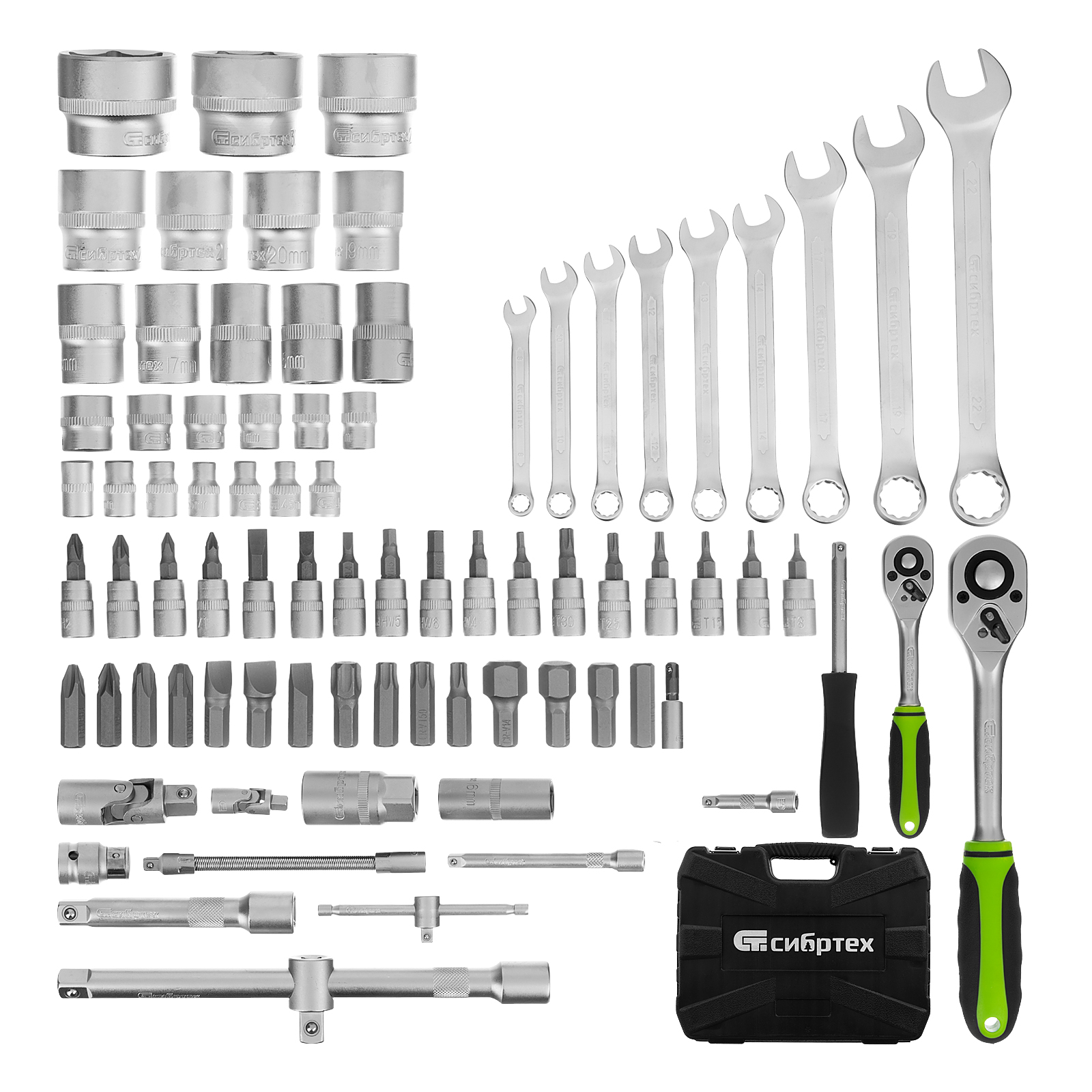 Набор инструмента, 1/2", 1/4", пластиковый кейс, 83 предмета Сибртех