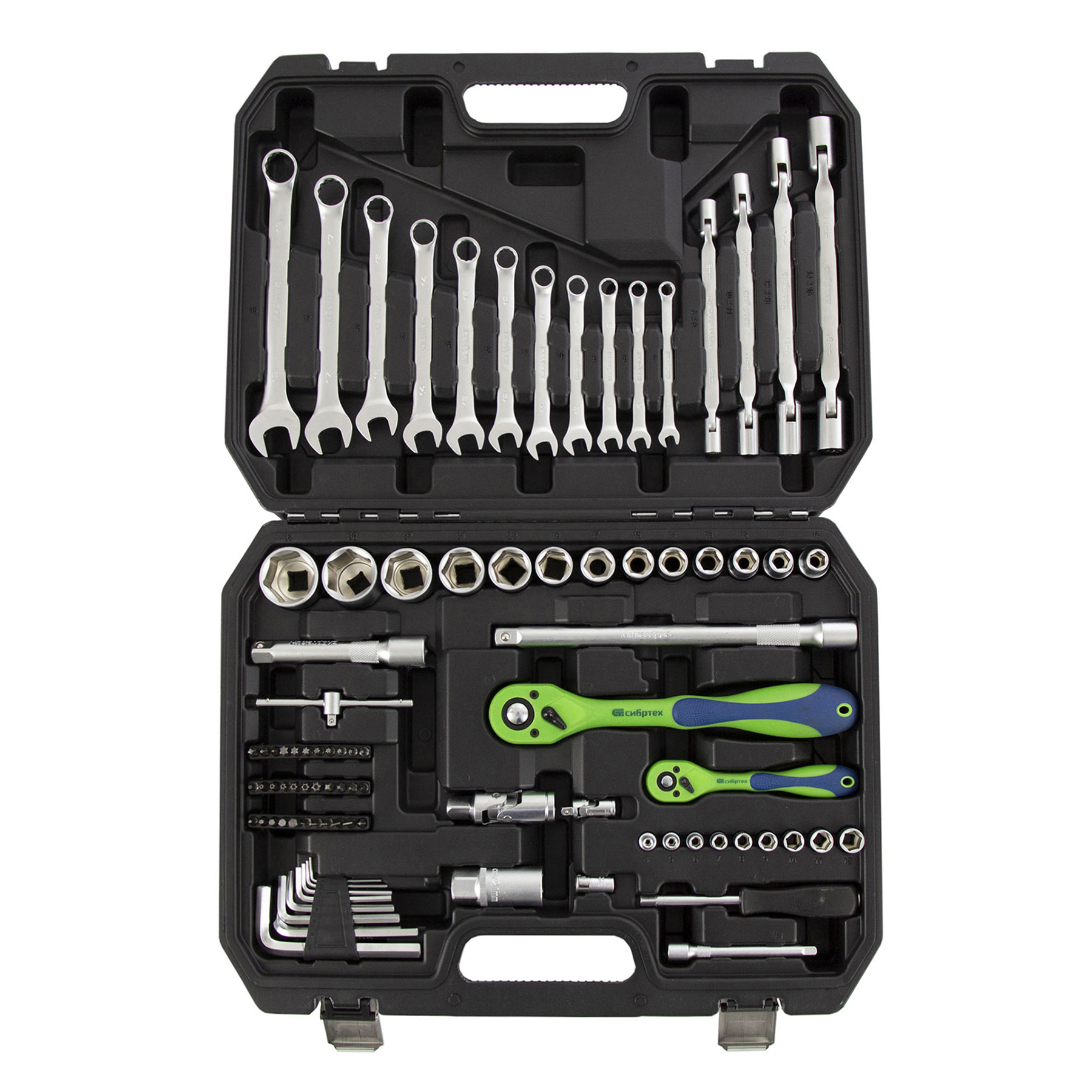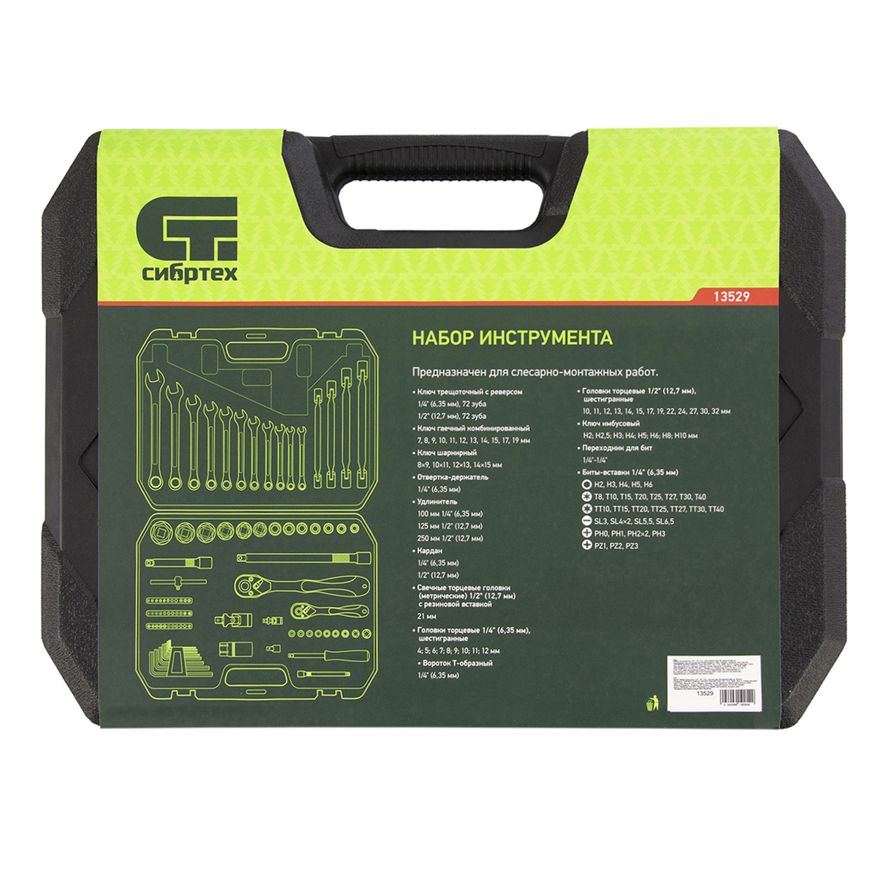 Набор инструментов 89 предметов, CrV 1/2", 1/4" Сибртех