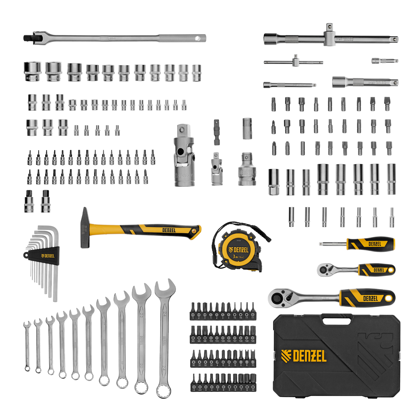 Набор инструментов, 1/2", 1/4", CrV, S2, пластиковый кейс, 194 предмета Denzel в Казани