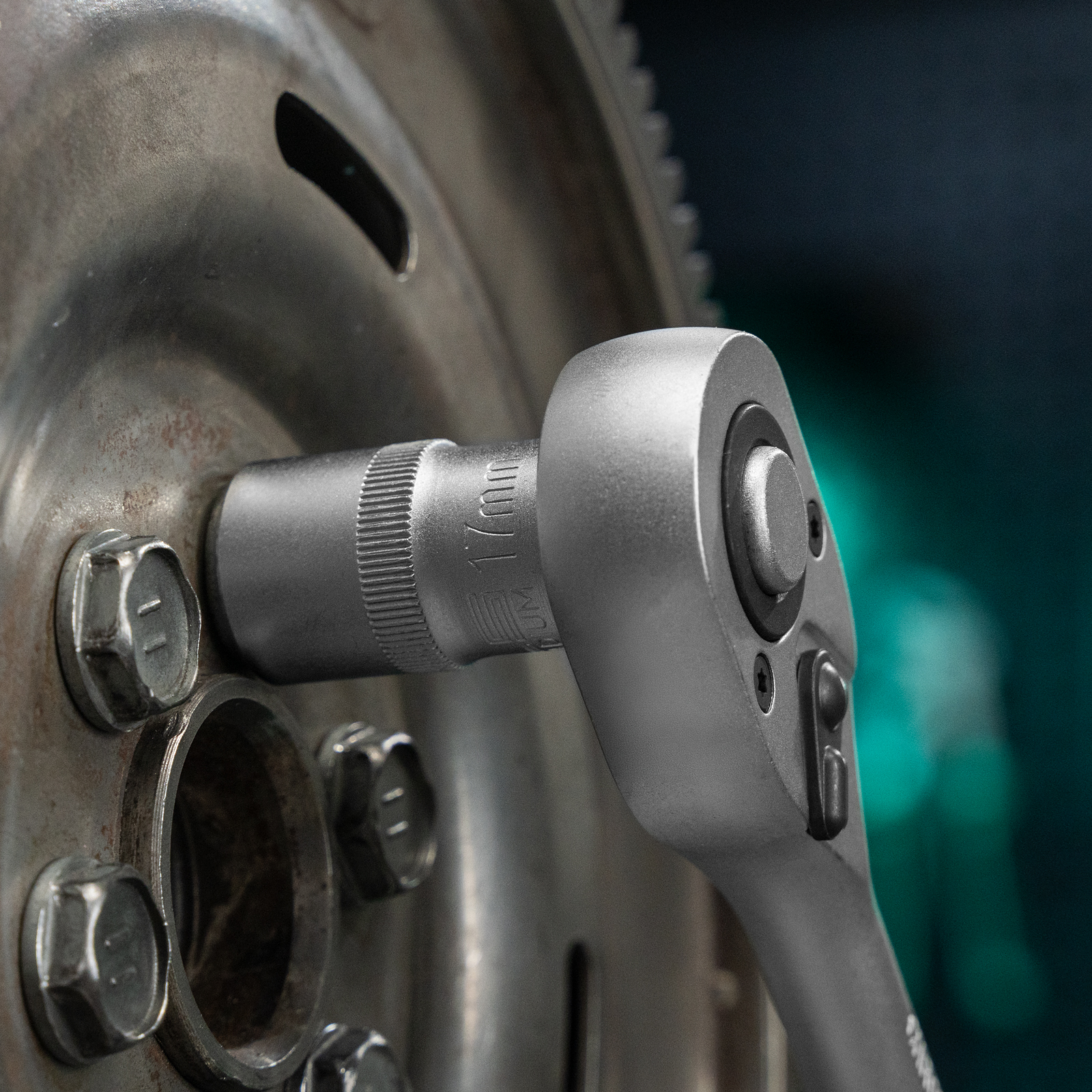 - Быстрая замена торцевых головок — трещоточный ключ имеет механизм быстрого сброса.