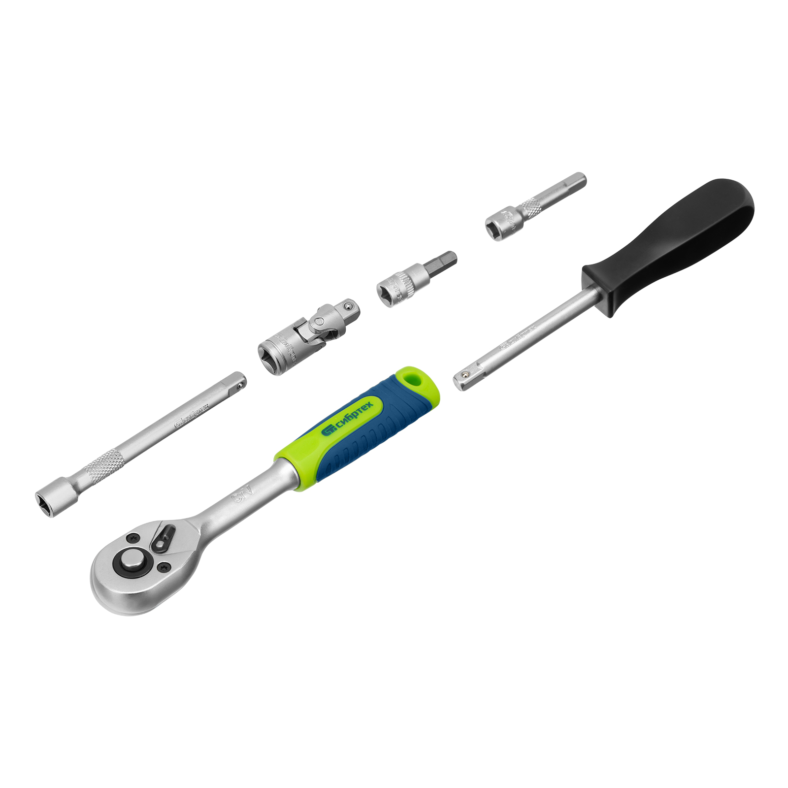 - Комфортная и эффективная работа — ключи-трещотки с 45 зубьями оснащены механизмом быстрого сброса, переключателем реверса с металлическим флажком и двухкомпонентной рукояткой.