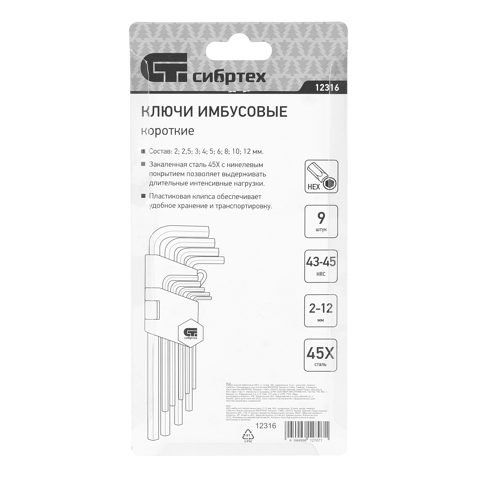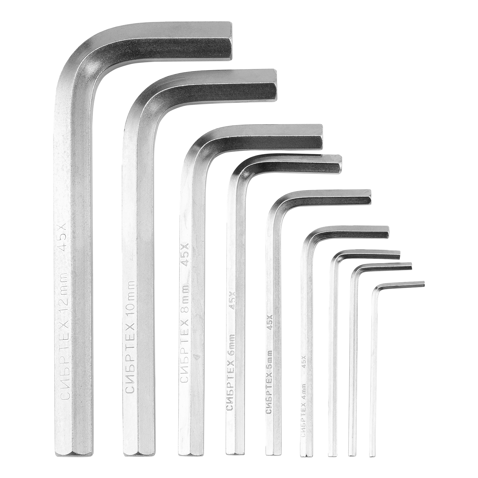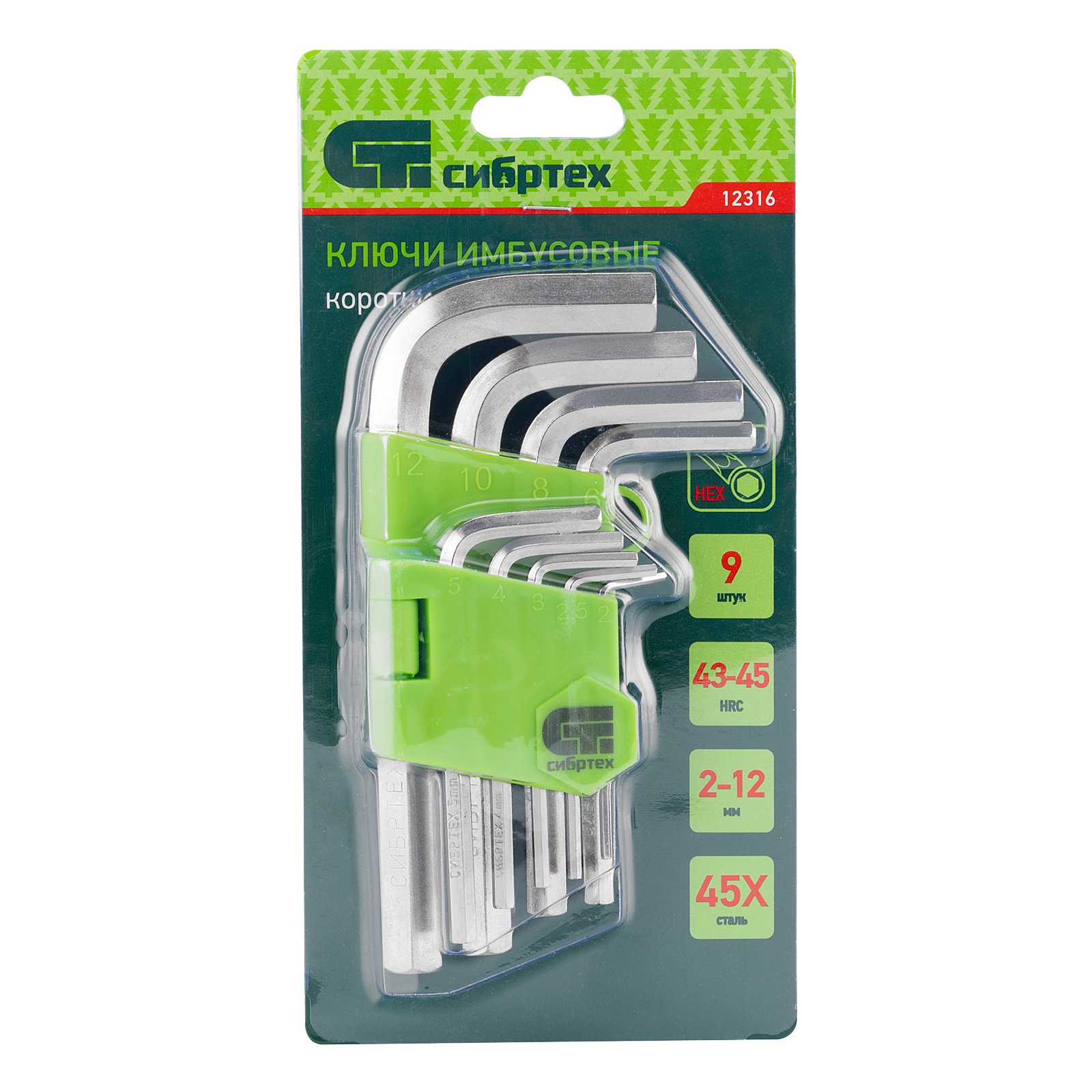 Набор ключей имбусовых HEX, 2-12 мм, 45x, закаленные, 9 шт, короткие, никель Сибртех в Казани